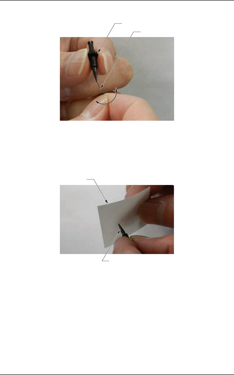 4OM-1841 1-5-8 1605-001 (3) 朝吸附孔纵向移动针规,去除内部堵塞物。 针规 高速吸嘴 (4) 通过吹气吹掉已去除的脏污。 ( 用遮蔽胶带粘付高速吸嘴前端的细小脏污,将其清除掉。) 遮蔽胶带 高速吸嘴
