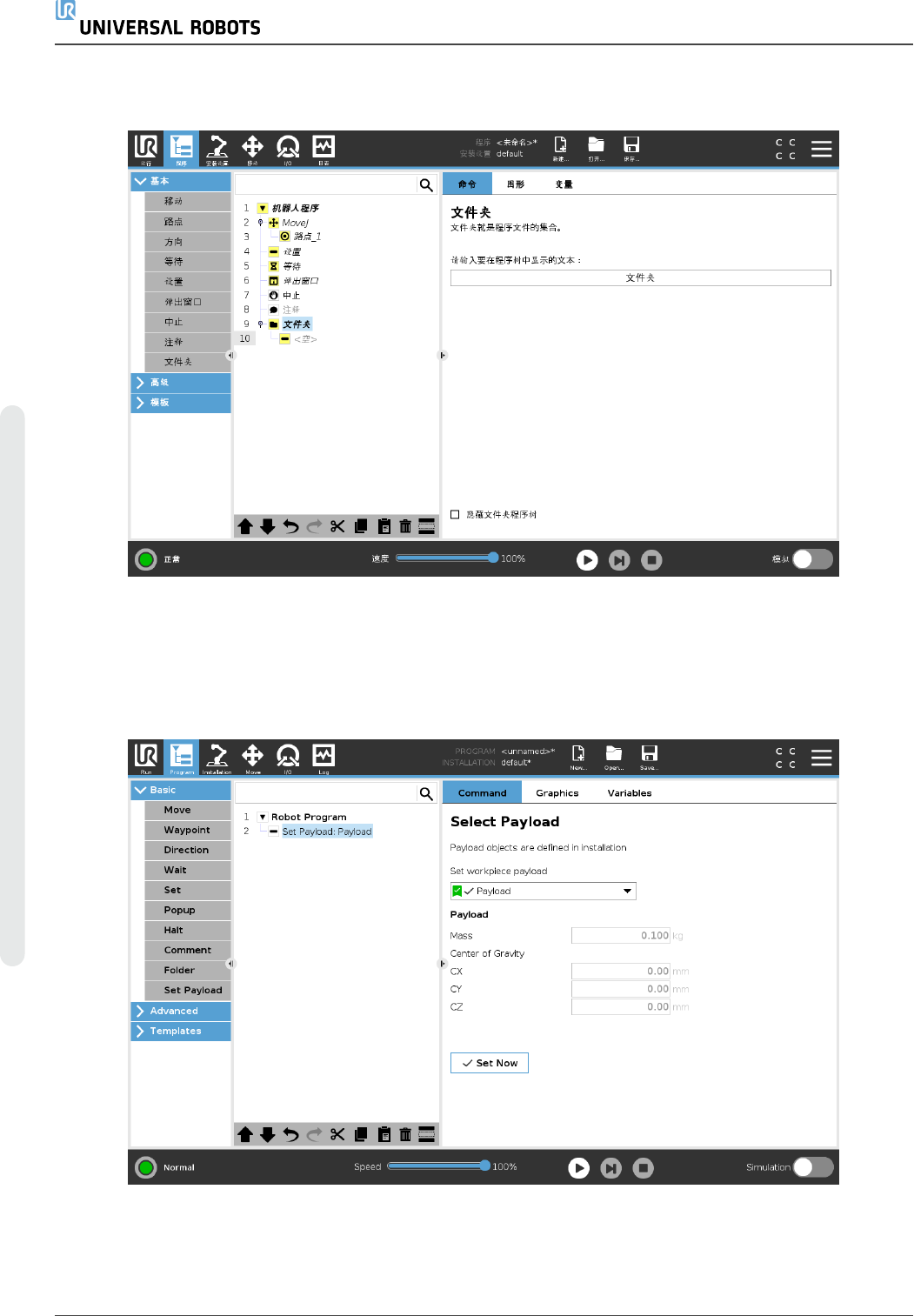 注 意 正 确 设 置 有 效 载 荷 能 够 确 保 最 佳 移 动 性 能 并 避 免 保 护 性 停 止 。 • 在 使 用 抓 手 拾 取 和 释 放 物 体 时 设 置 有 效 载 荷 。 要 使 用 “ 设 置 有 效 载 荷 ” 命 令 , 您 可 以 : • 使 用 选 择 有 效 载 荷 下 的 下 拉 菜 单 , 选 择 安 装 中 已 配 置 的 一 个 有 效 载 荷 。 • 或 者 , 使 用 下 拉 菜 单 …