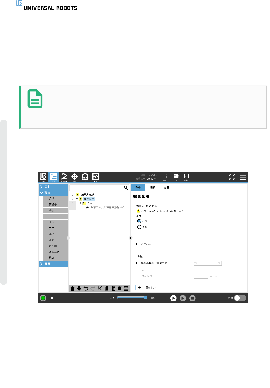 • 表达式:与 If 命令( 请参阅24.11.2. If在本页153) 类似,选择表达式来描述机器人跟随螺丝