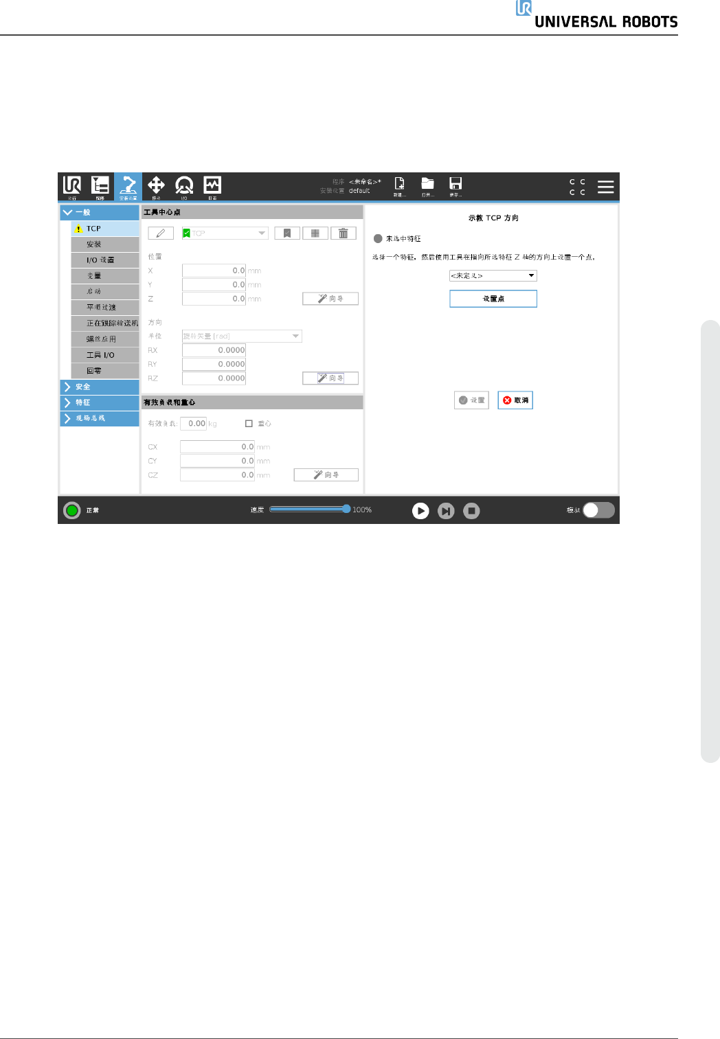 • 必须在安装设置中正确定义机器人安装和角度