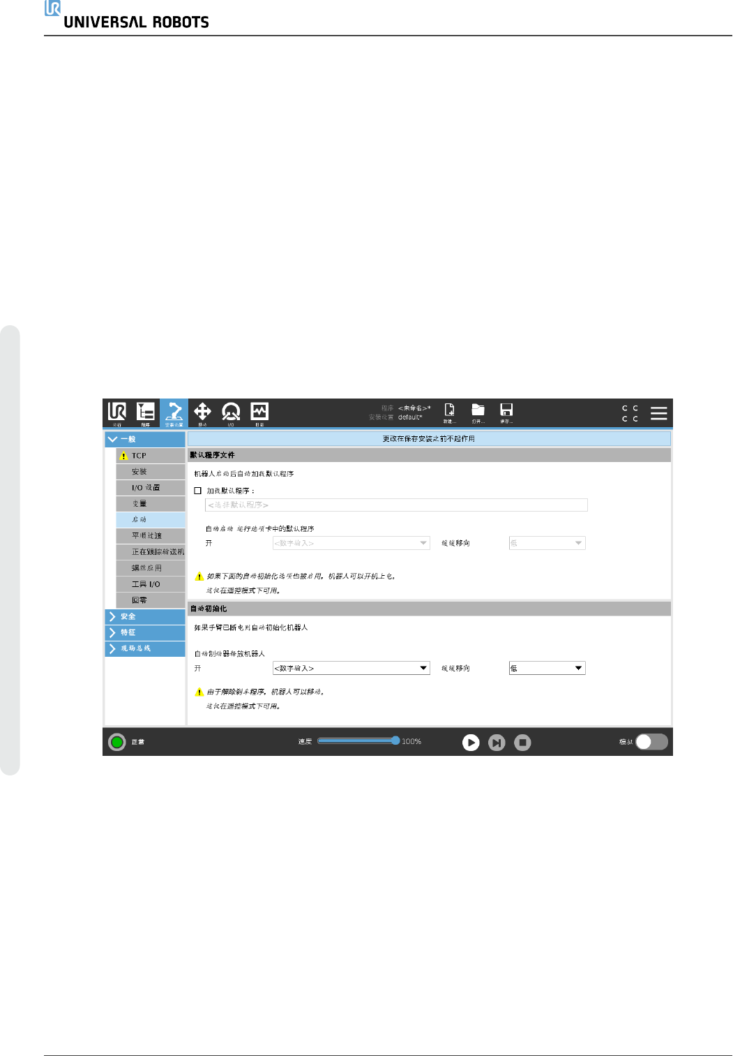 如果在使用“开始”输入操作时机器人停止,则机器人会在执行该程序之前缓慢