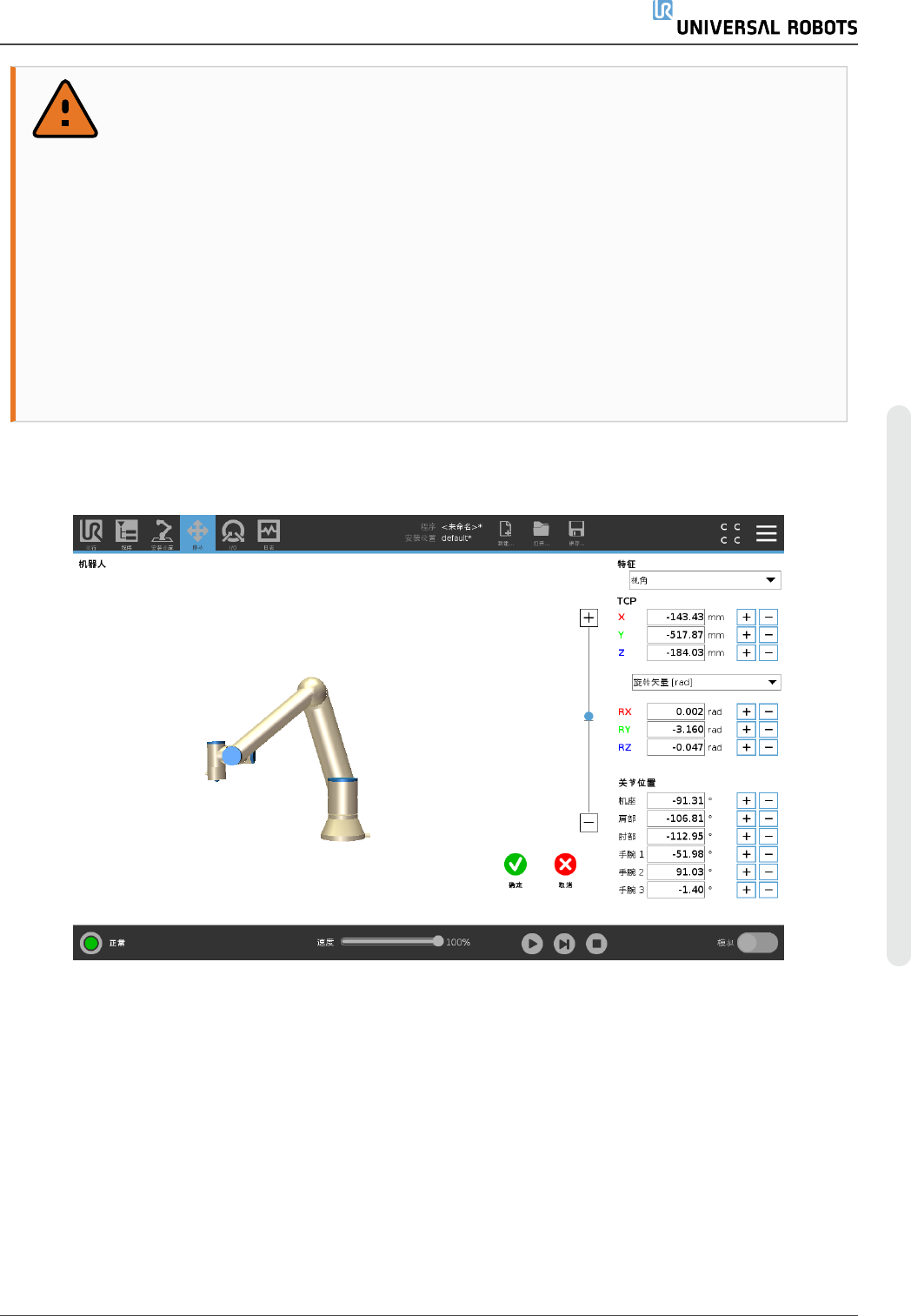 碍物不得有锋利的边缘或夹点。确保所有人员都在机器人手臂工作范围
