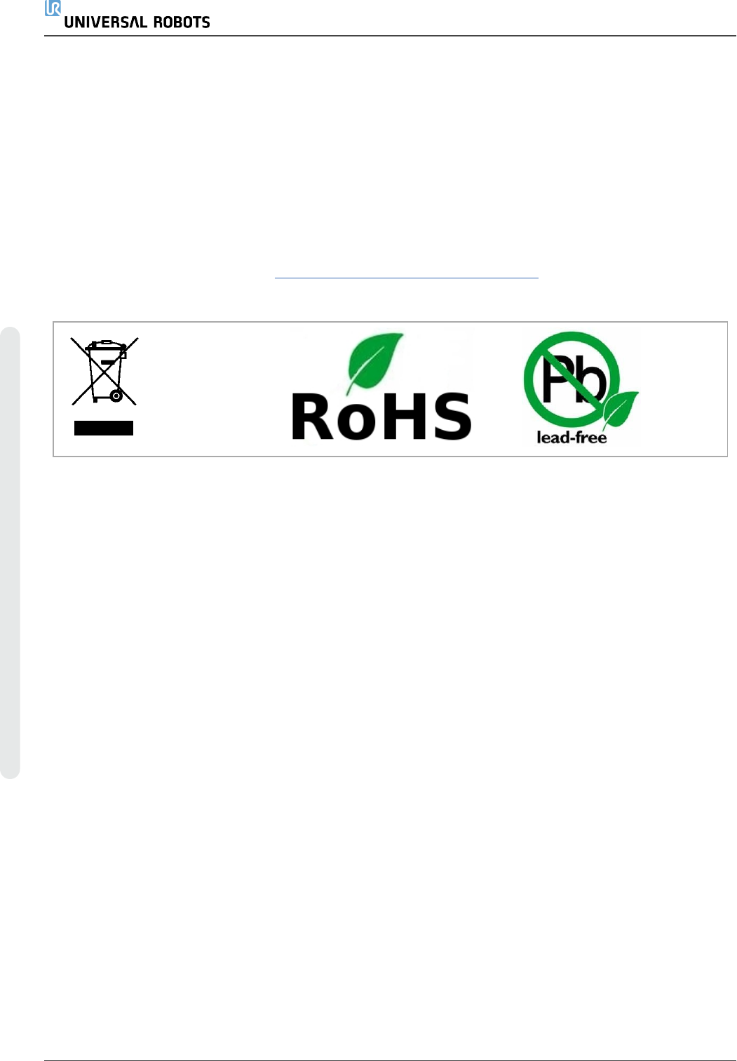 Universal Robots e-Series 机器人生产时限制使用有害物质以保护环境;符合欧洲 RoHS 指令