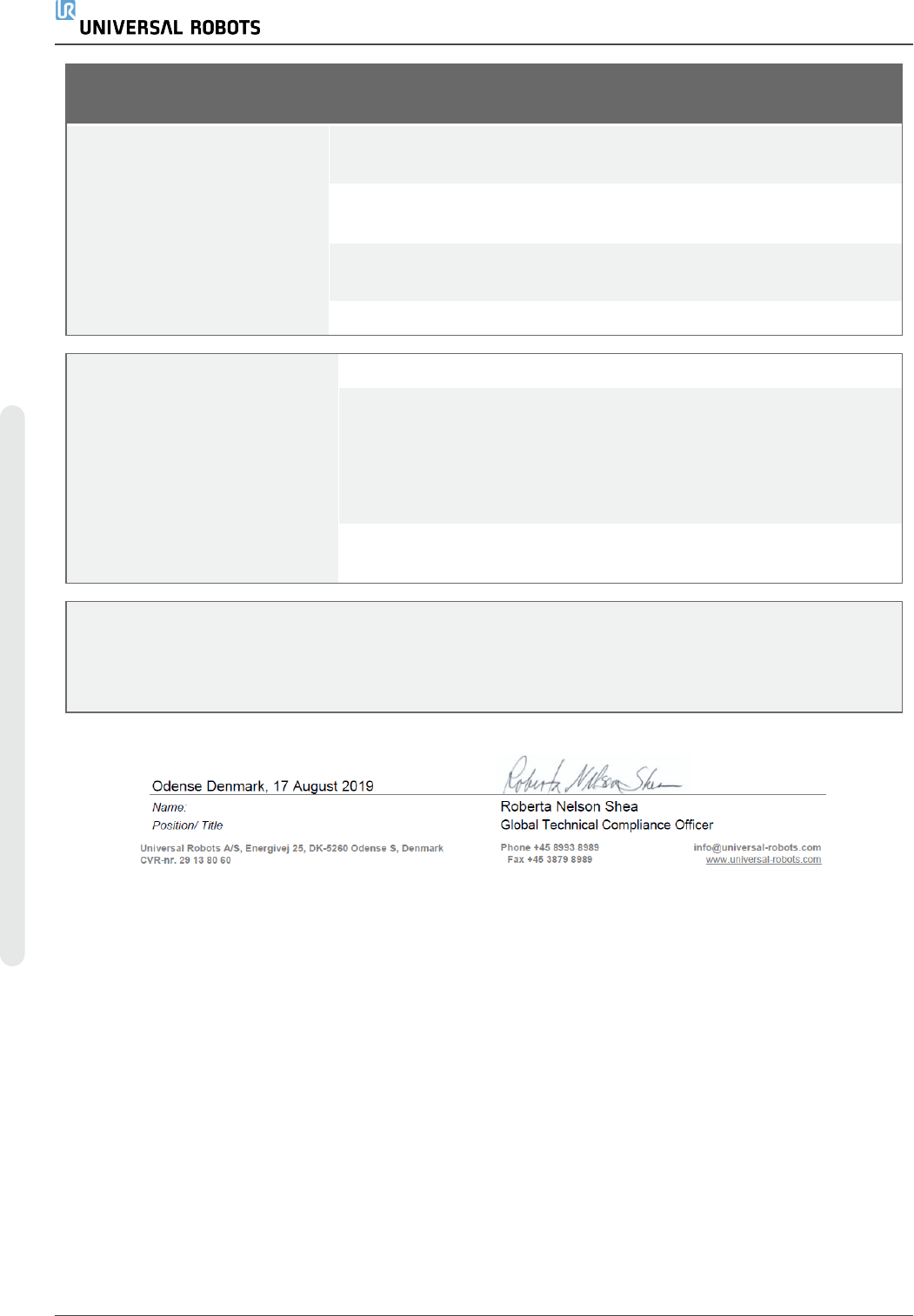 Incorporation: Universal Robots UR3e, UR5e, UR10e and UR16e shall only be