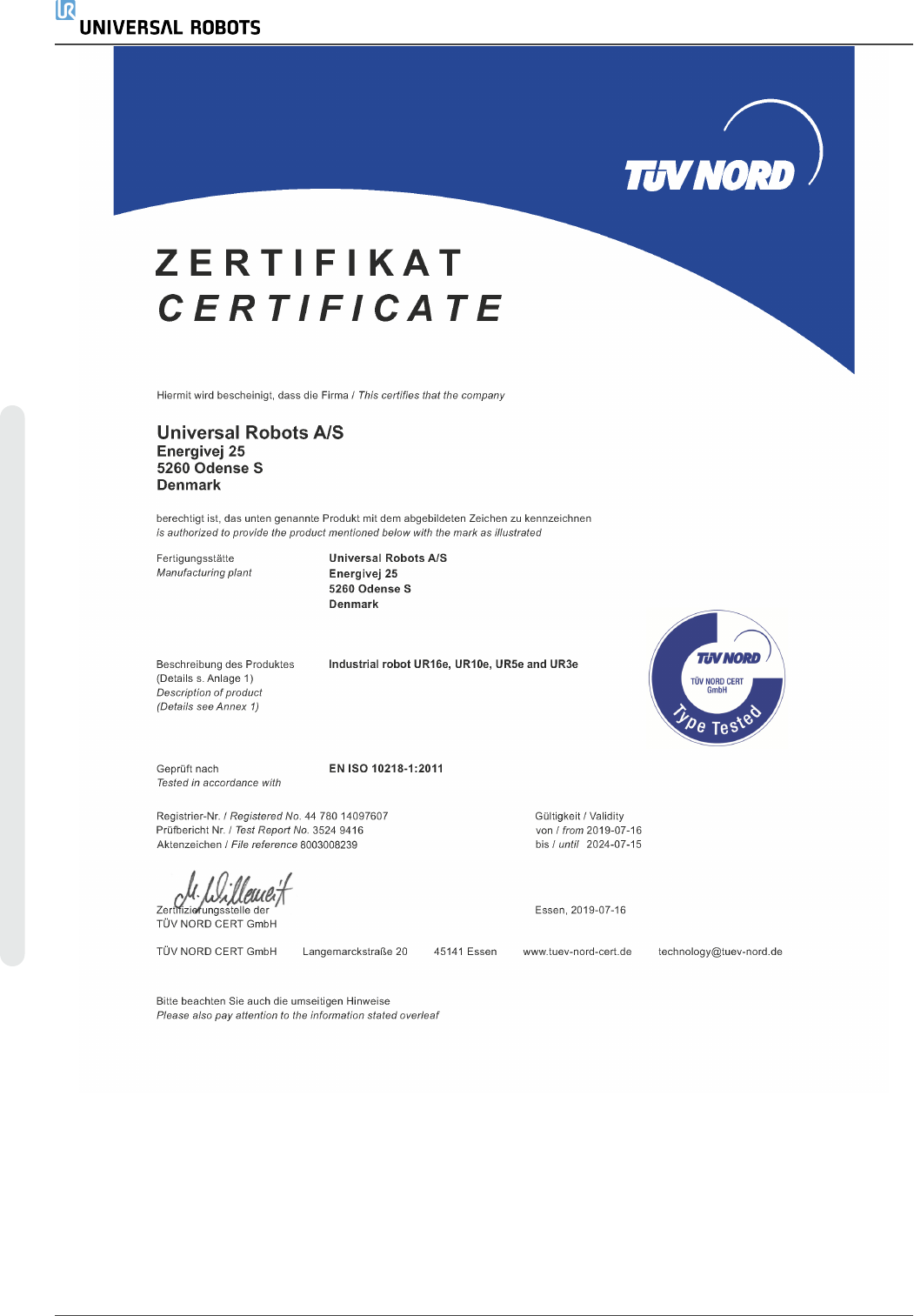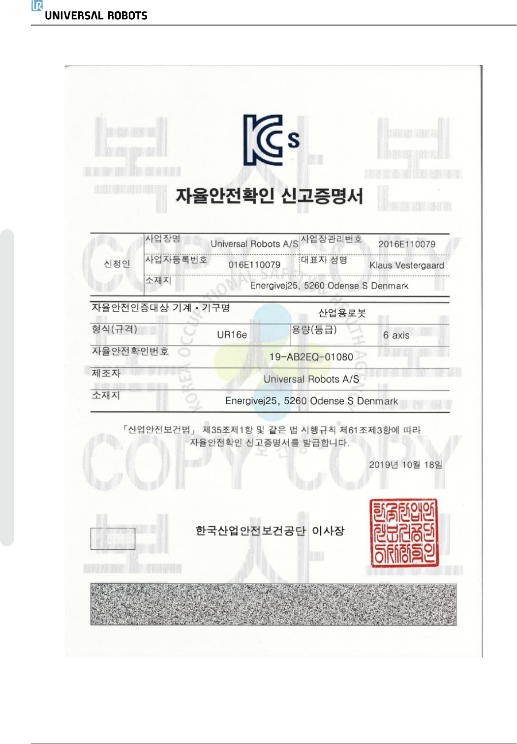 中 国 R oH S 用 户 手 册 6 5 UR 1 6 e 1 4 . 认 证 版 权 所 有 © 2 009–2021U ni ver s al R obots A/S 。 保 留 所 有 权 利 。
