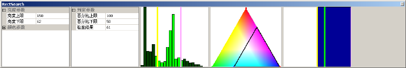 MarkSearch 计算参数: 亮度参数(可用鼠标通过直方图来设定) : a) 亮度上限:设定最高亮度值( 0~255 ) b) 亮度下限:设定最低亮度值( 0~255 ) 颜色参数(可用鼠标通过色彩图来设定) : c) 红色上限:设定红色最大值( 0~173 ) d) 红色下限:设定红色最小值( 0~173 ) e) 绿色上限:设定绿色最大值( 0~173 ) f) 绿色下限:设定绿色最小值( 0~173 ) g) 蓝色上限:设定蓝…