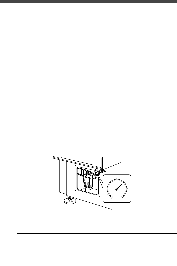 圧力調整バルブをまわして、圧力表示針(黒)が 0.6 ∼0.7MPa を指すように