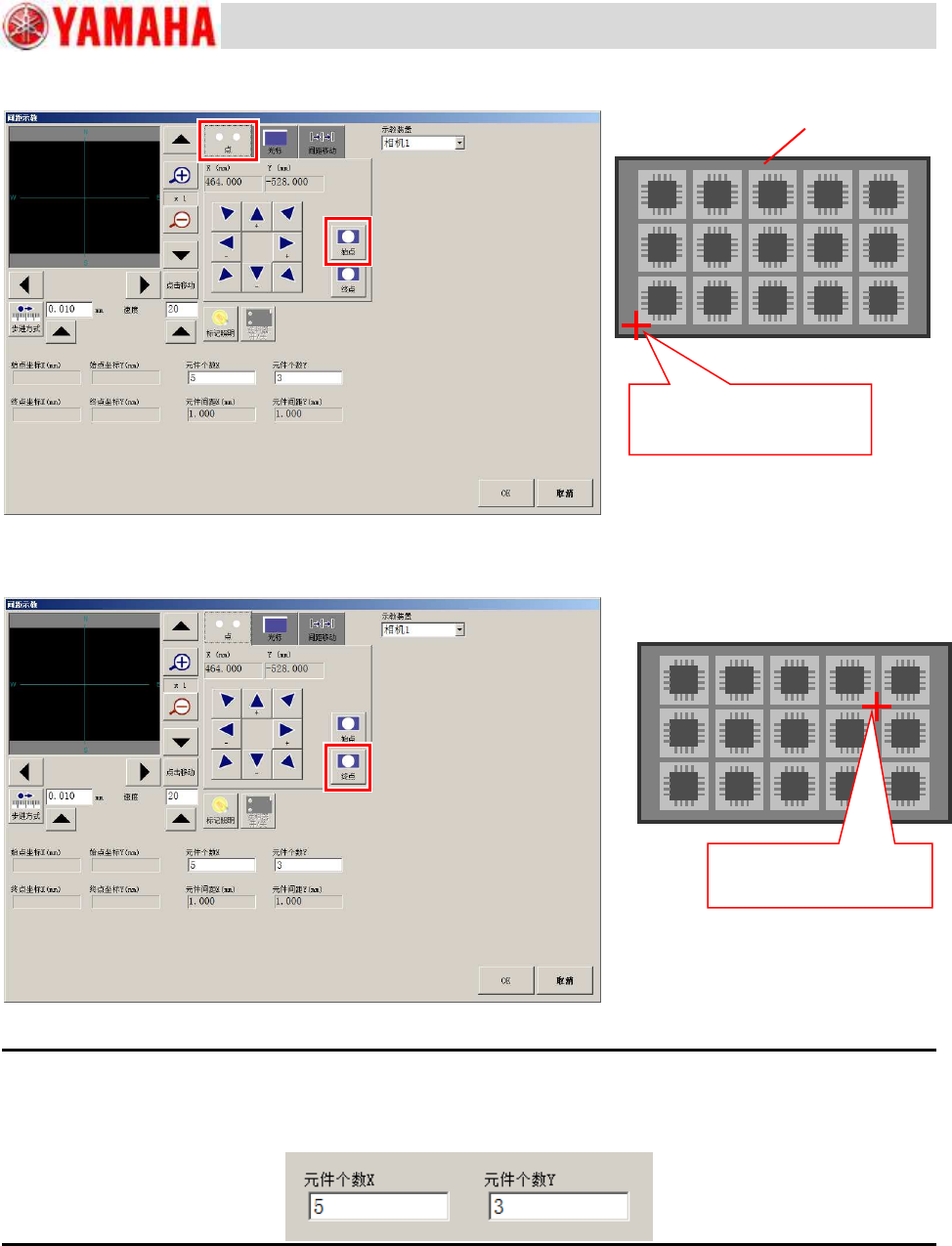 在上述画面中可以指定元件的个数 XY。该数值只用于计算间距,因此即使在此更改该值也不会反映到元件数