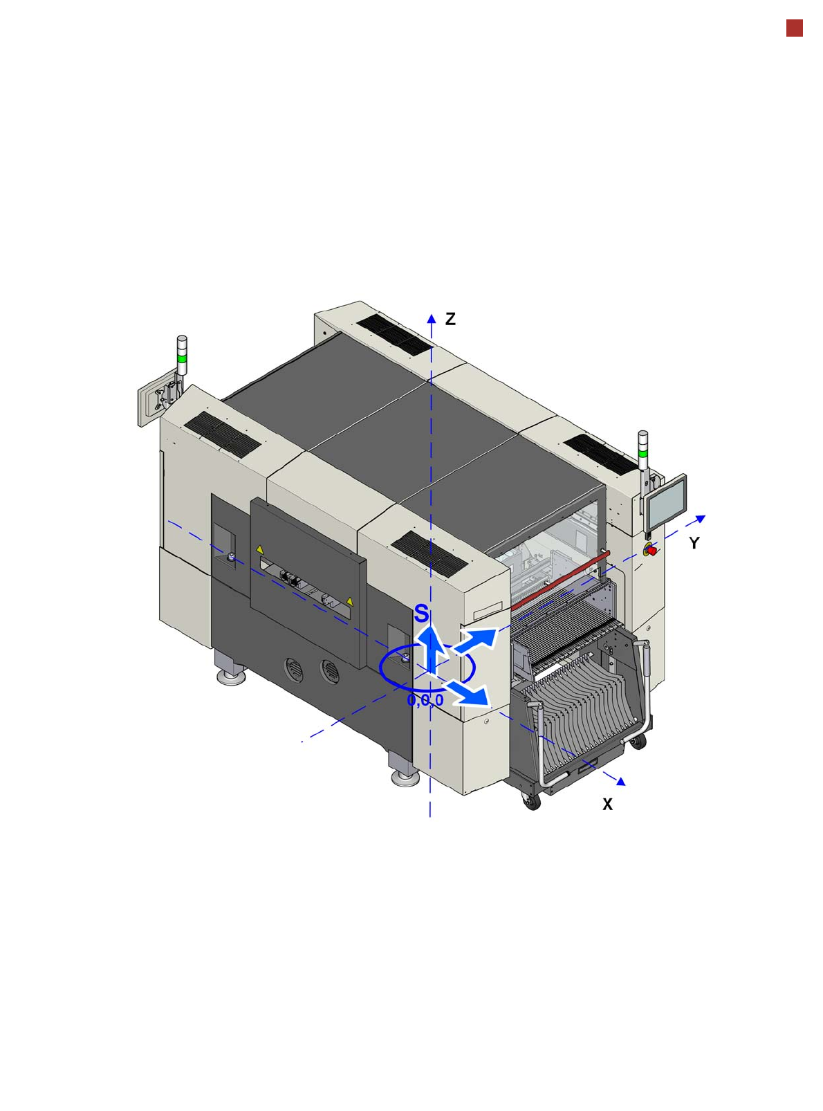 47 Technical data Machine dimensions Machine center of gravity X = 0 mm Y = 0 mm Z = 738.5 mm