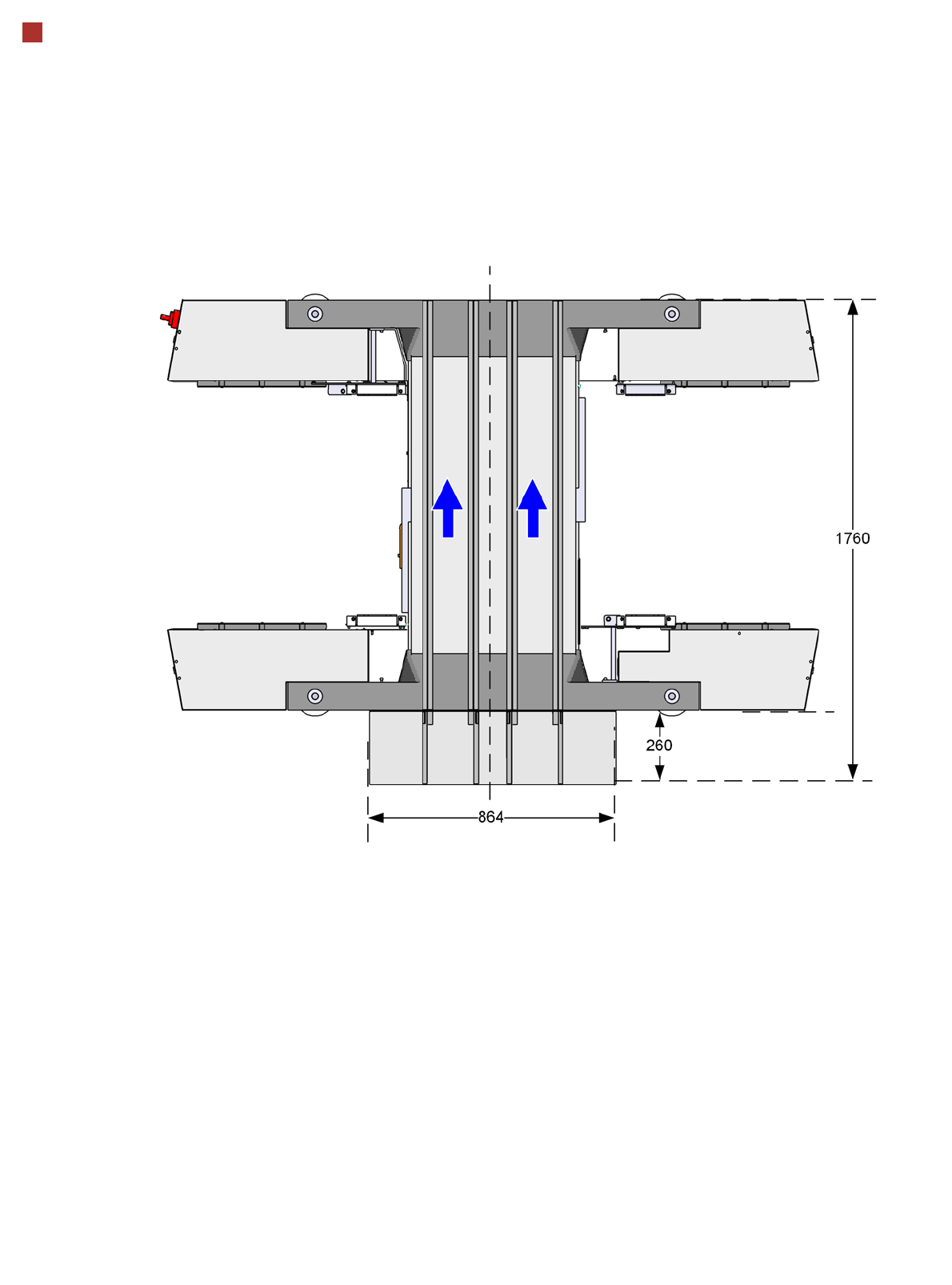 52 Technical data Spacing distances with input conveyor extension All dimensions in millimeters.