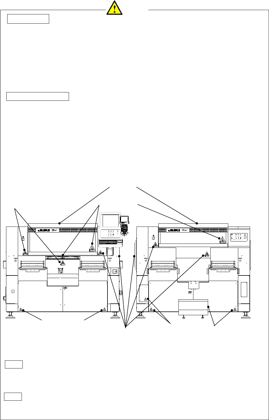 3. 贴在机器上的警告标识,请正确粘贴,使之醒目可见。若发生剥落或污损,请与本公司联系,换成