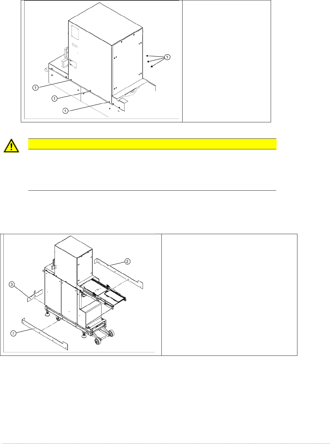 The tower is set with these 6 screws (1) at the factory.