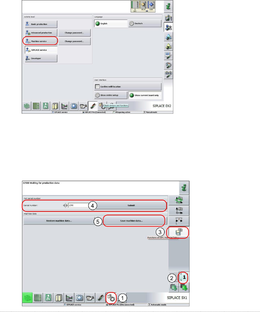 Service Manua l WPC5 / WPC6 Page 4-141 Restoring the machi ne data ➢ Log in as Machine service . ➢ Select Sensors and Functions (1) => Location . ➢ Select the relevant locat ion (2). ➢ Select the option WPC Machine …