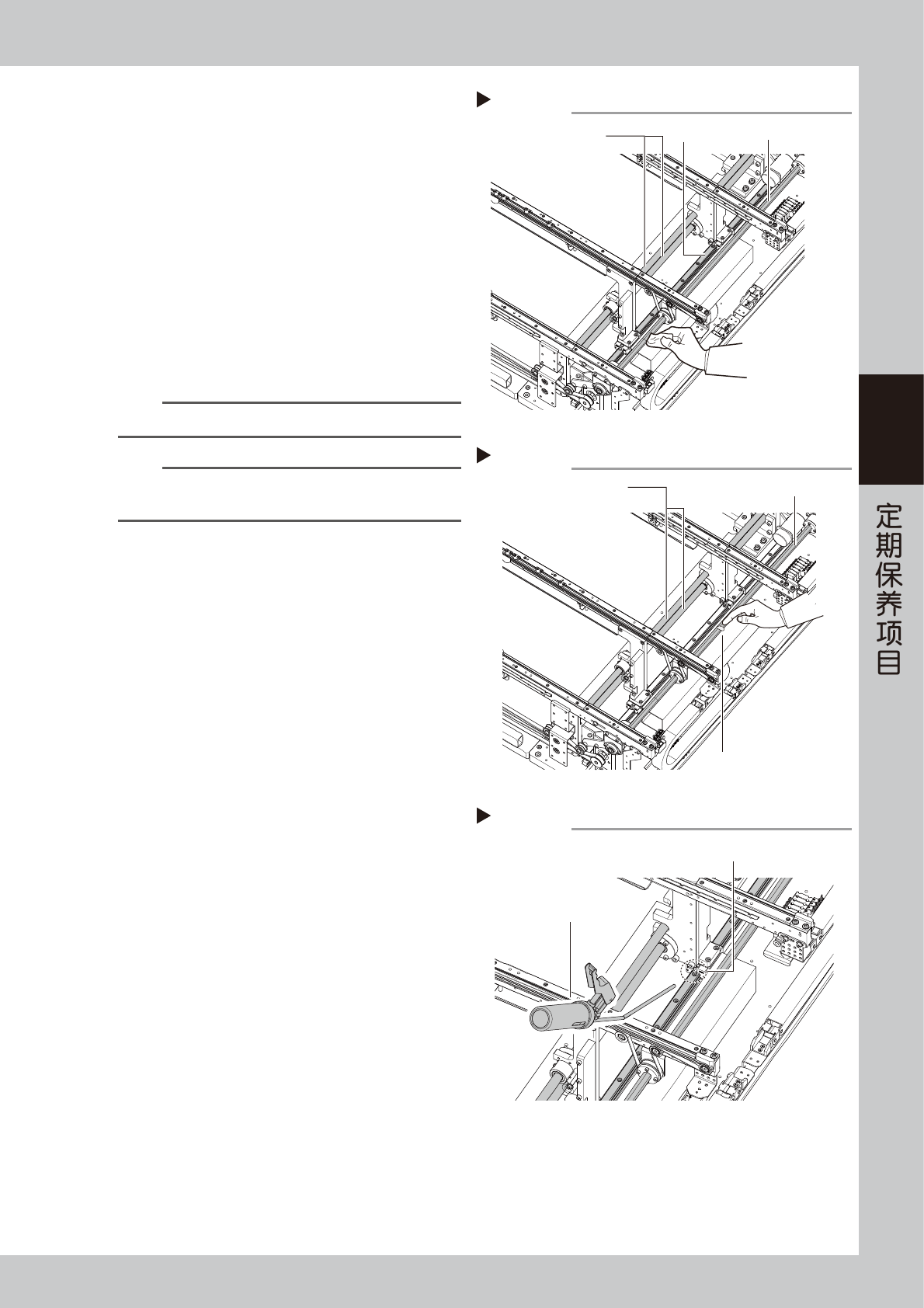 3. 用无尘擦拭纸等擦去滚珠丝杆、六角轴、导轨