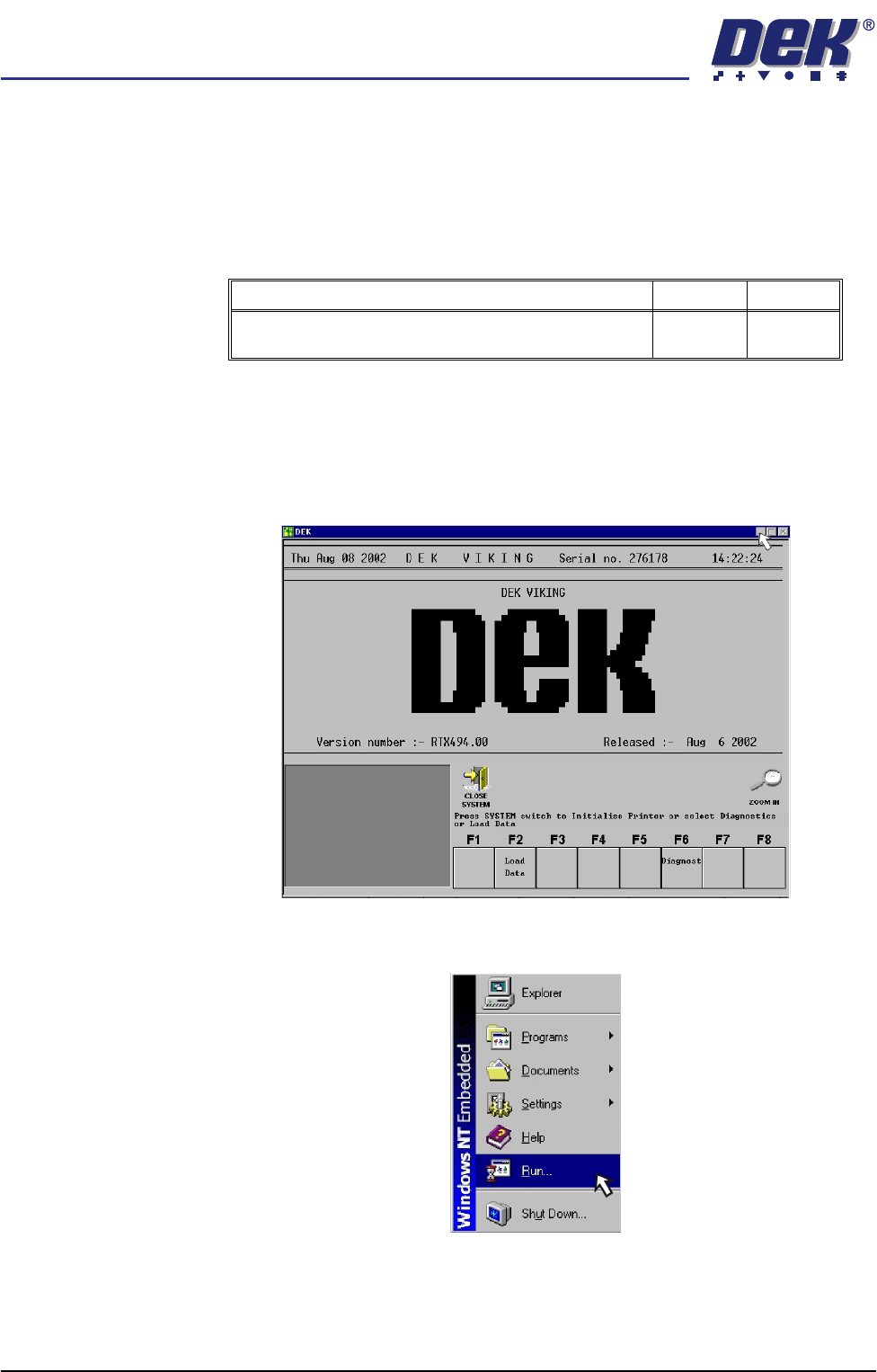 semi automatic POWER UP SEQUENCE MACHINE POW ER UP SEQUEN CE 6.2 Installatio n Manual Chapt er Issue 1 O ct 02 MACHINE POWER UP SE QUENCE Hard Disk Chec k 1. Connect the mains supply to the machine. 2. T urn the Mai ns I…
