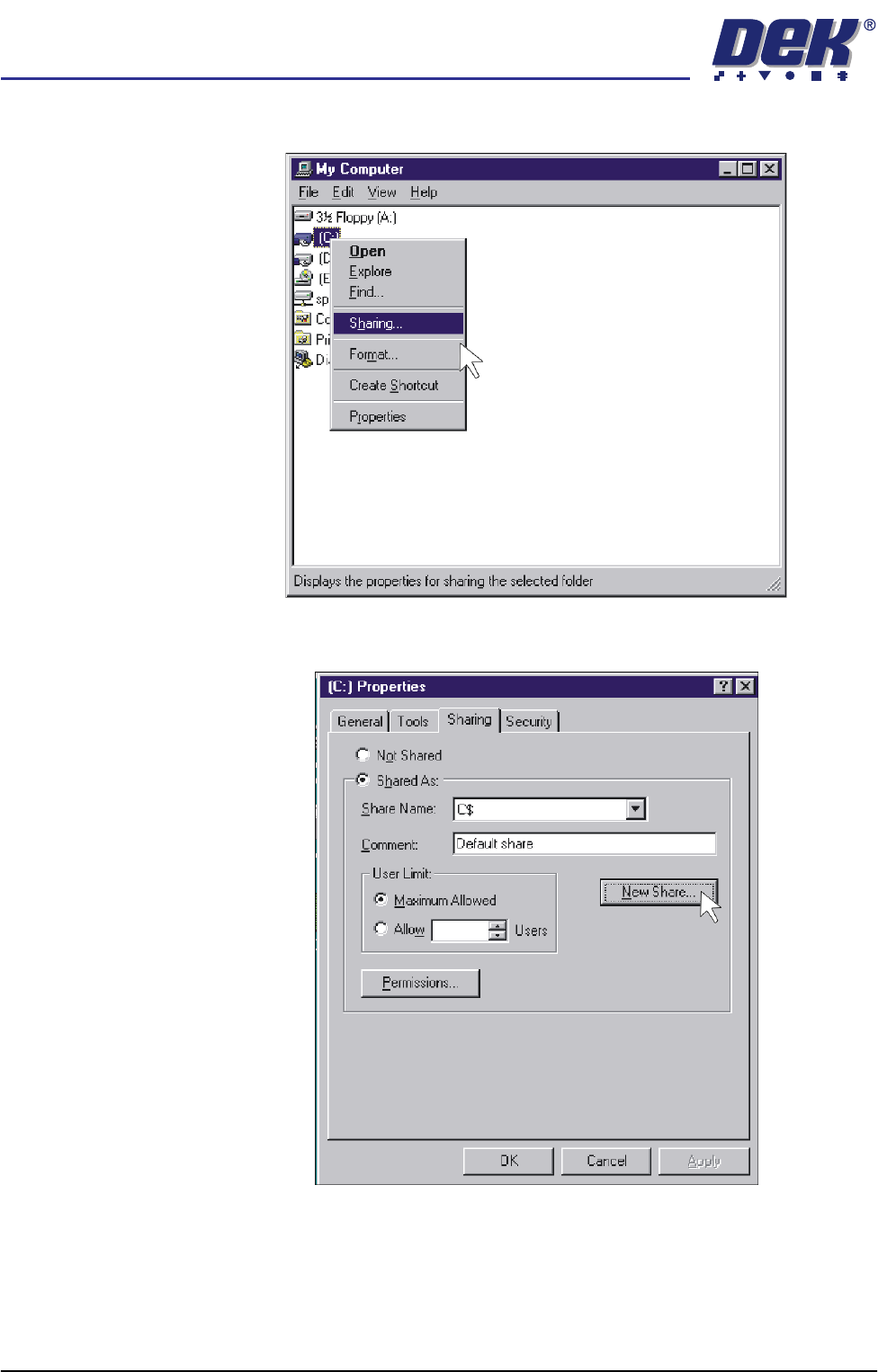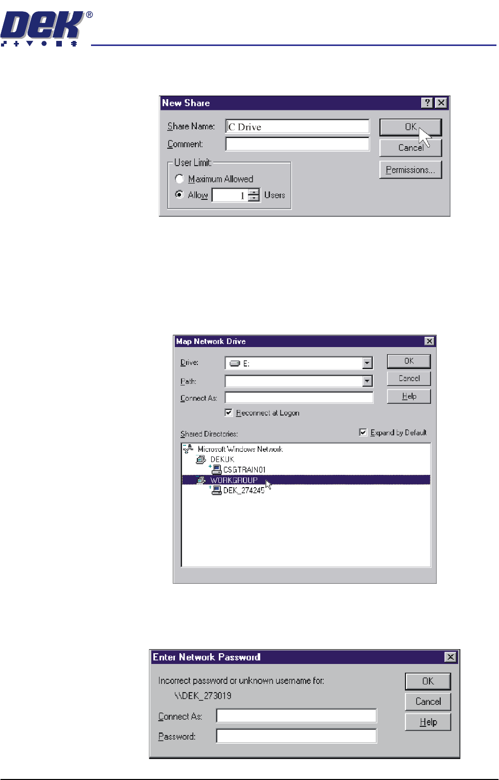 21. Map the C drive on the DEK machine to a spare drive letter on the laptop.