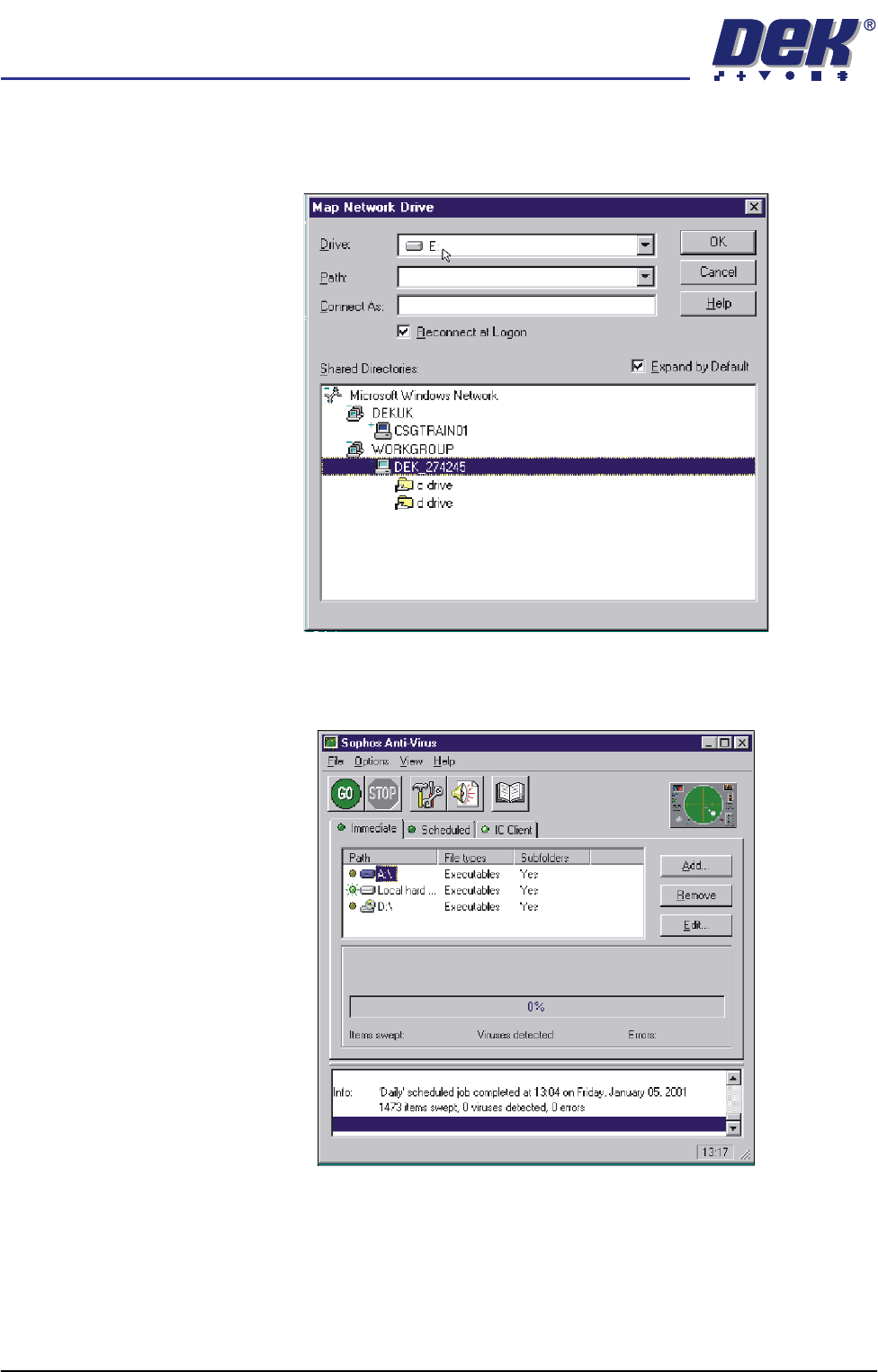 22. Repeat Steps 16 - 21 for the D drive on the DEK machine.