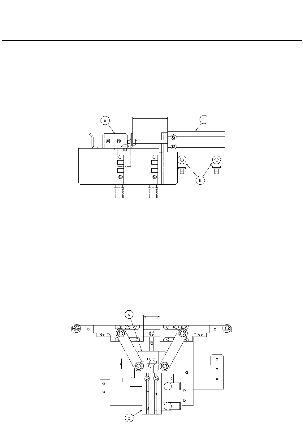请在气缸②的拉回侧行程末端将 Y LINK BASE(A)朝箭头方向推压,调整到下图所示的尺寸。