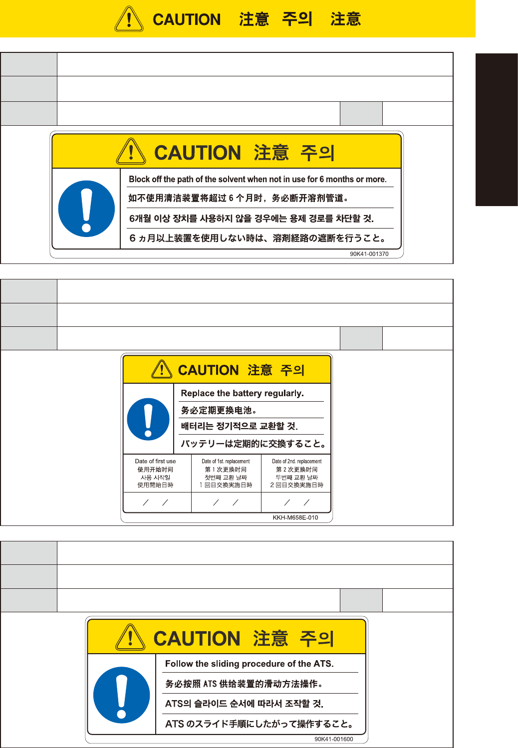 If machine is not to be used for 6 months or more, block off the solvent path to protect solvent