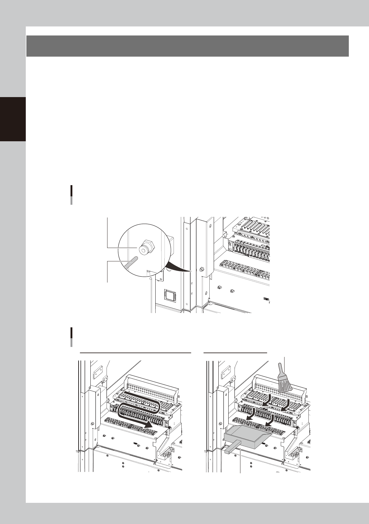 Sweep out the dust with the feeder plate cleaning brush supplied with the machine in the arrow directions shown in the