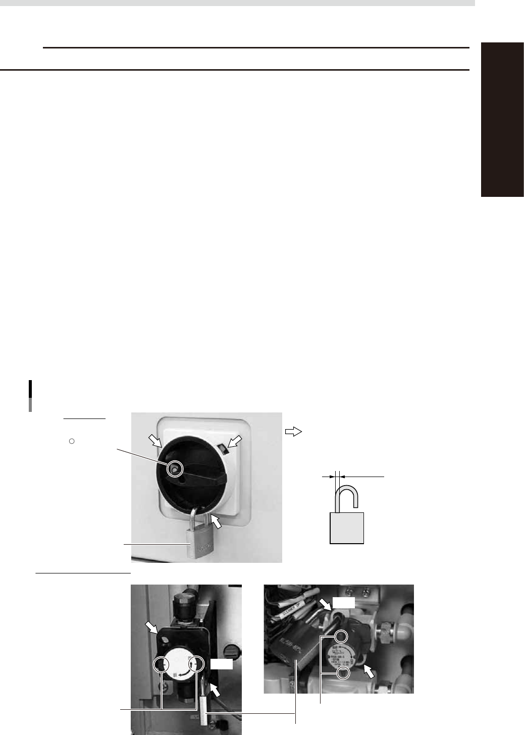 Also, make sure to lock the main switch and the air supply/exhaust switch with a padlock when the machine is