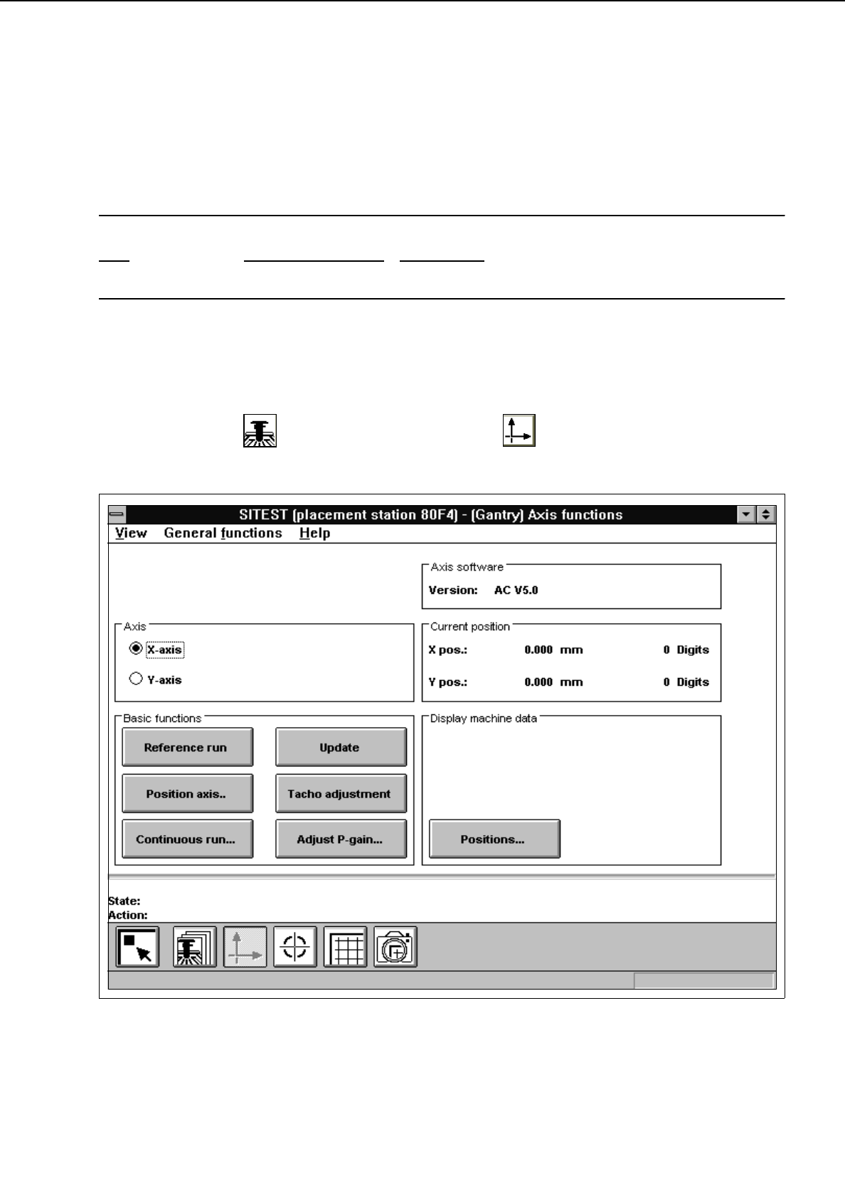Fig. 2.1.1 "Gantry axis functions" Display