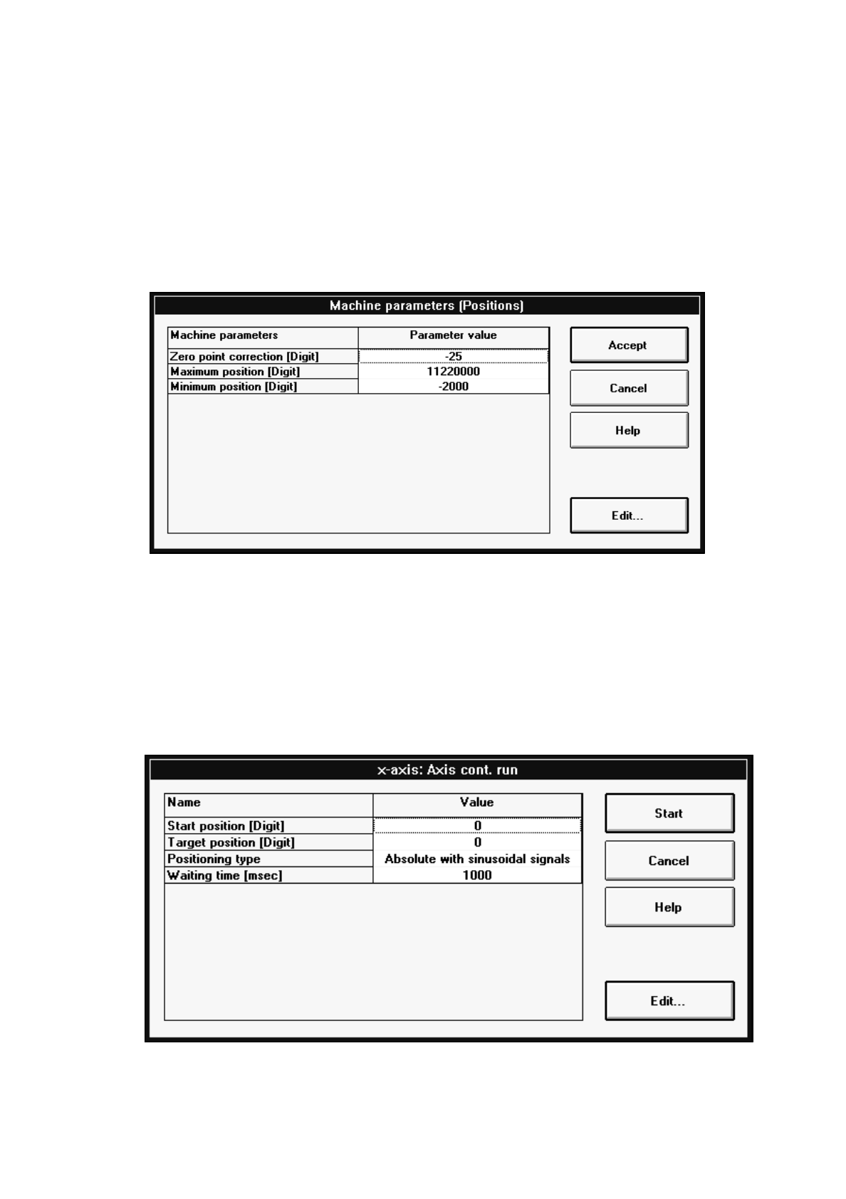 In this present software version only one positioning type is available for both the x- and y-axis.