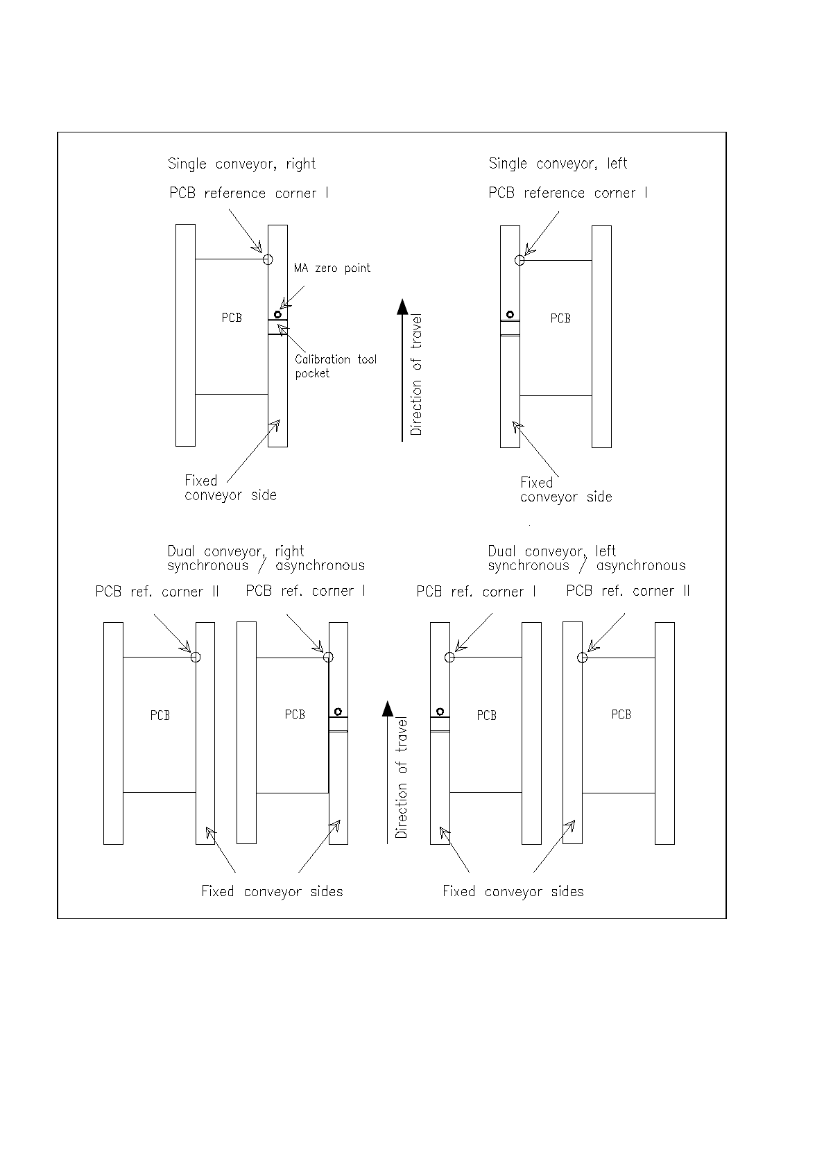 If a dual conveyor is installed on the machine, a PCB must be loaded on the right conveyor track ("PCB