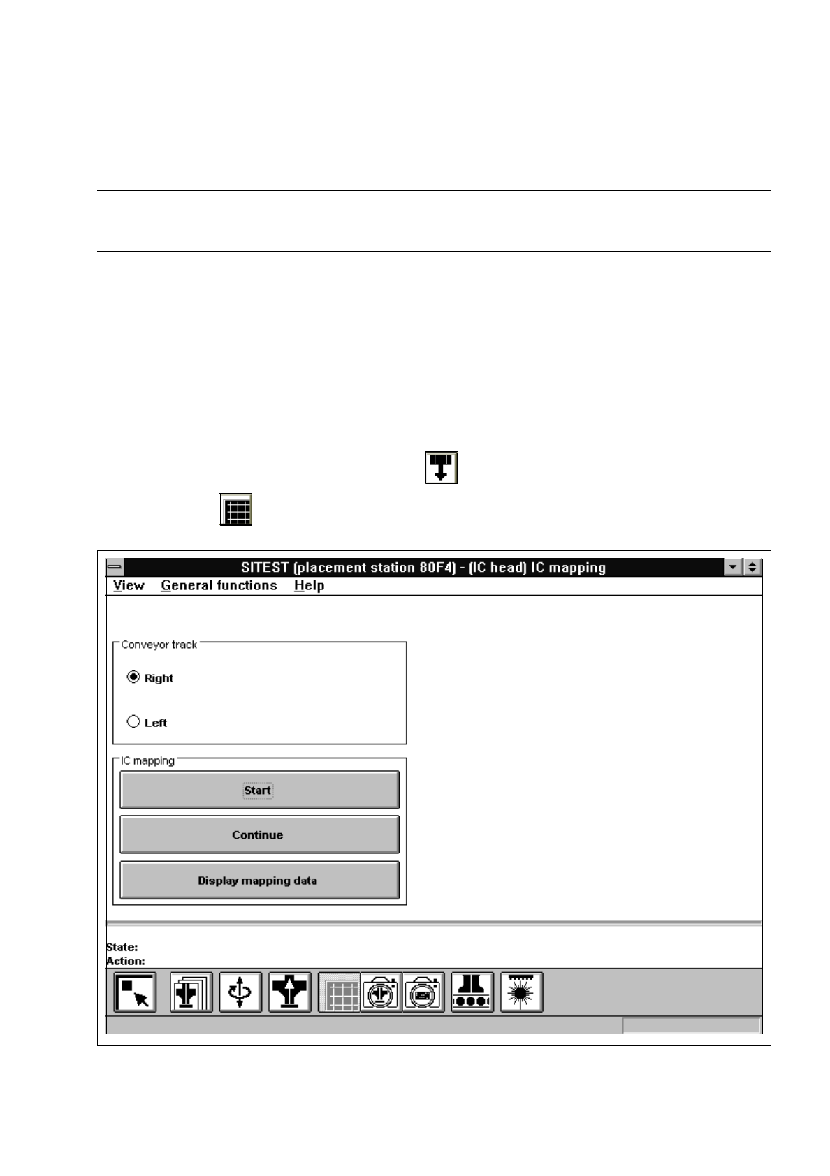 4 Mapping User’s Manual Test Program SITEST 4.4 IC Mapping Software Version 403.xx Edition 07/97 4 - 14 The foll owing func tions ar e avail able in t he "IC mappin g" display: – Right to se lect the r ight con…