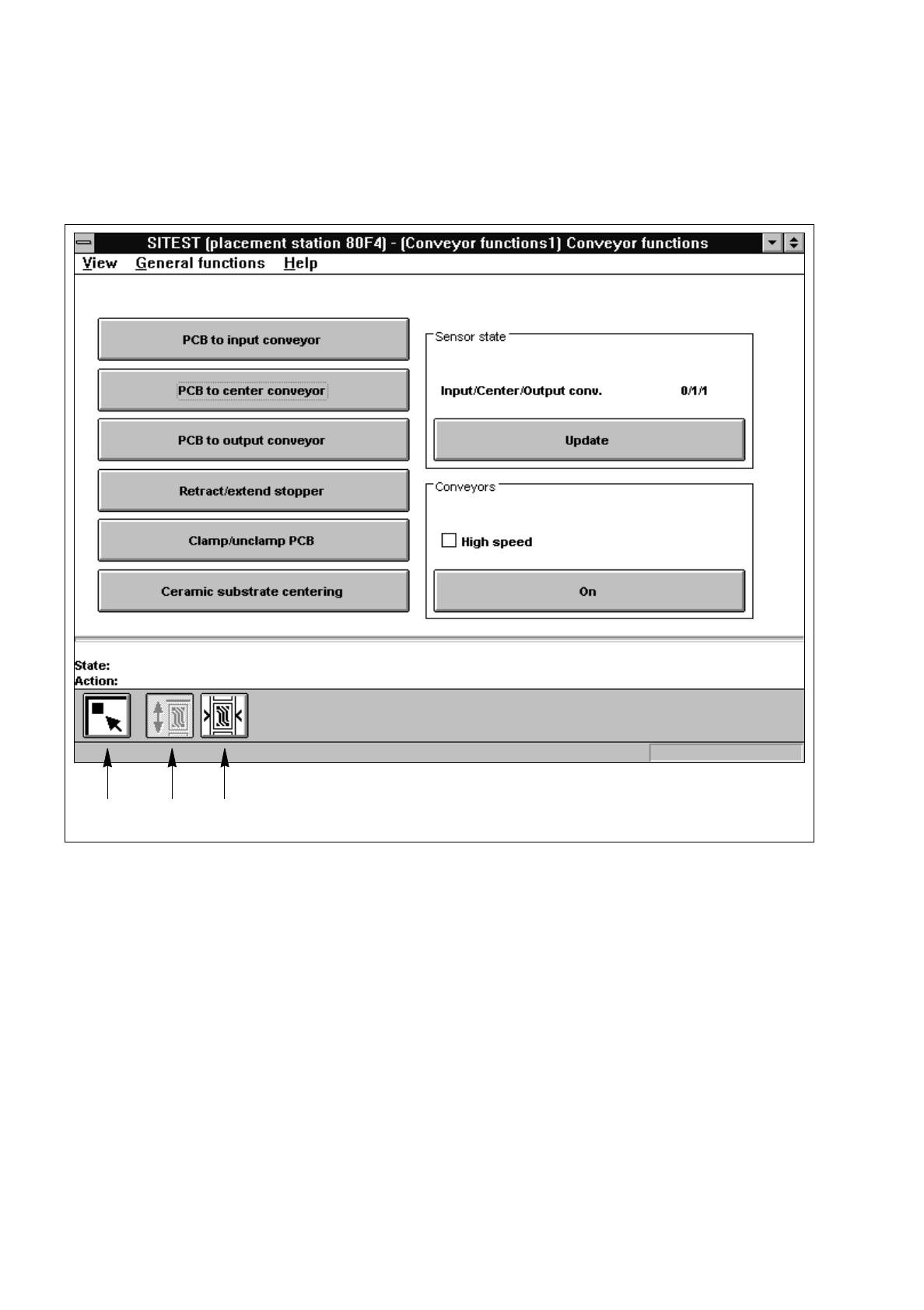 Fig. 0.3.8 "PCB Conveyor" Display (Example "PCB conveyor functions", SIPLACE 80F