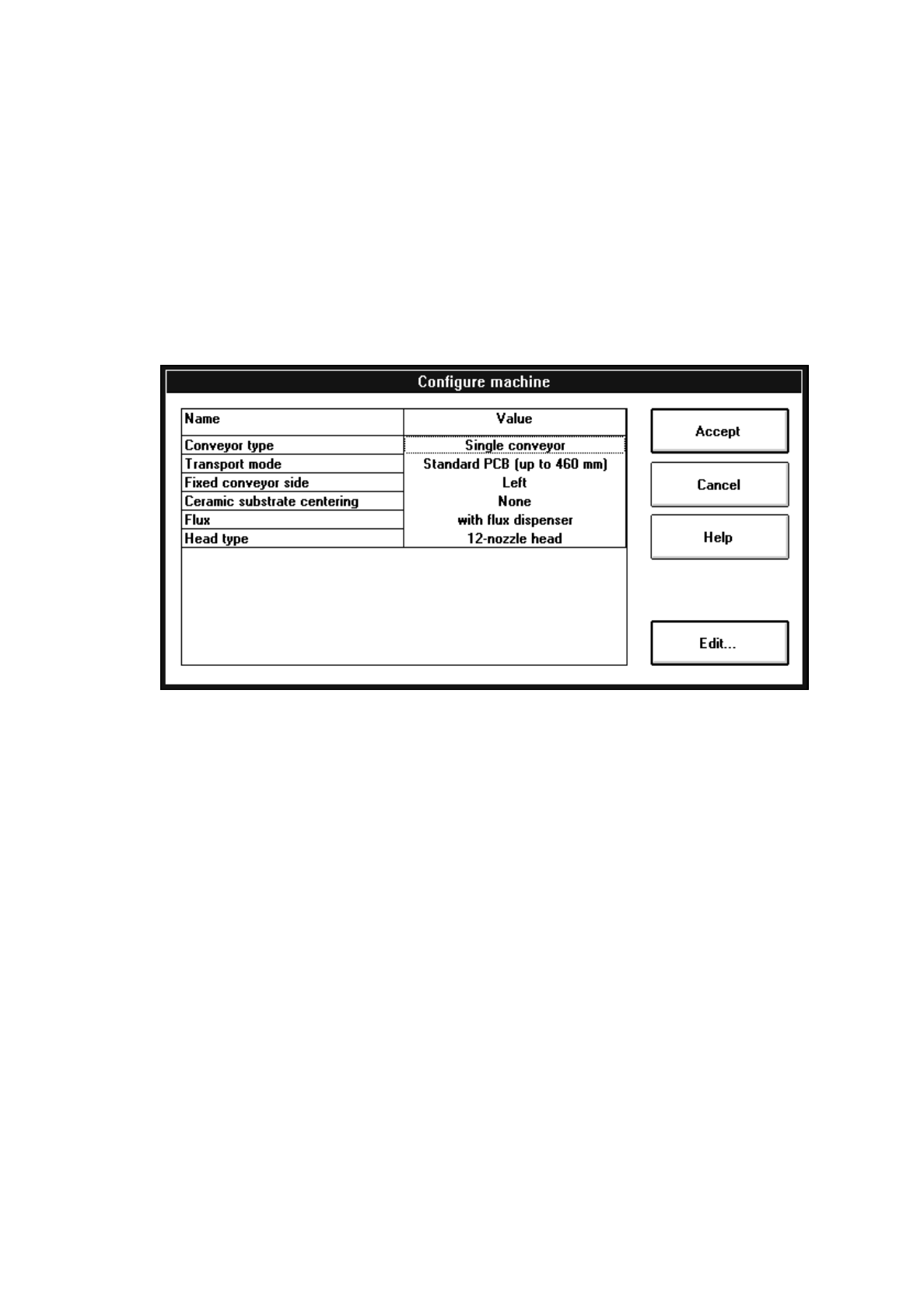 For example, if a flux dispenser is installed on the machine, it must also be entered in the "Machine configura-