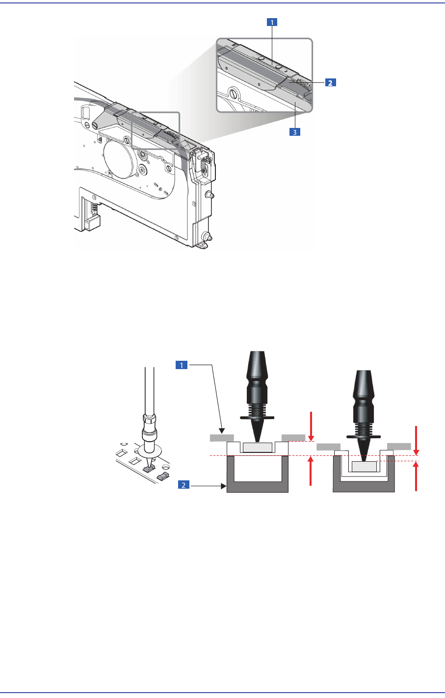 6-27 Module Function 1: 卷带导向器 2: 卷带导 3: 机架 1: T ape Guide 2: Frame 根据 T ape Feeder 种类不同吸附点的 Z 值可取不同值。 另外, 因不同的 部件供给 Ta p e 种类该值可取不 同值, Embossed T ape 的高 度应该低于 Paper T a pe 高度。 Embossed T ape 时, 请参照部件 Ta p e 规格, 适当地设置吸附 点…