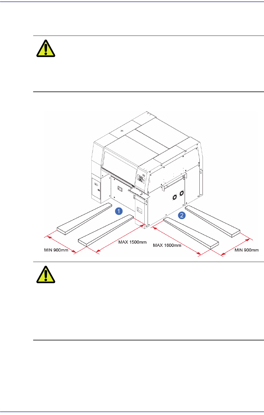 注 意 如果叉式升降机的升降臂(叉)碰到设备盖子的底部,盖子可能