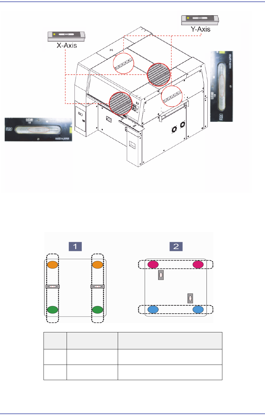4. 调整设备Foot 水平时,建议两个Foot为一组一次调整在一个方向上的水平,如