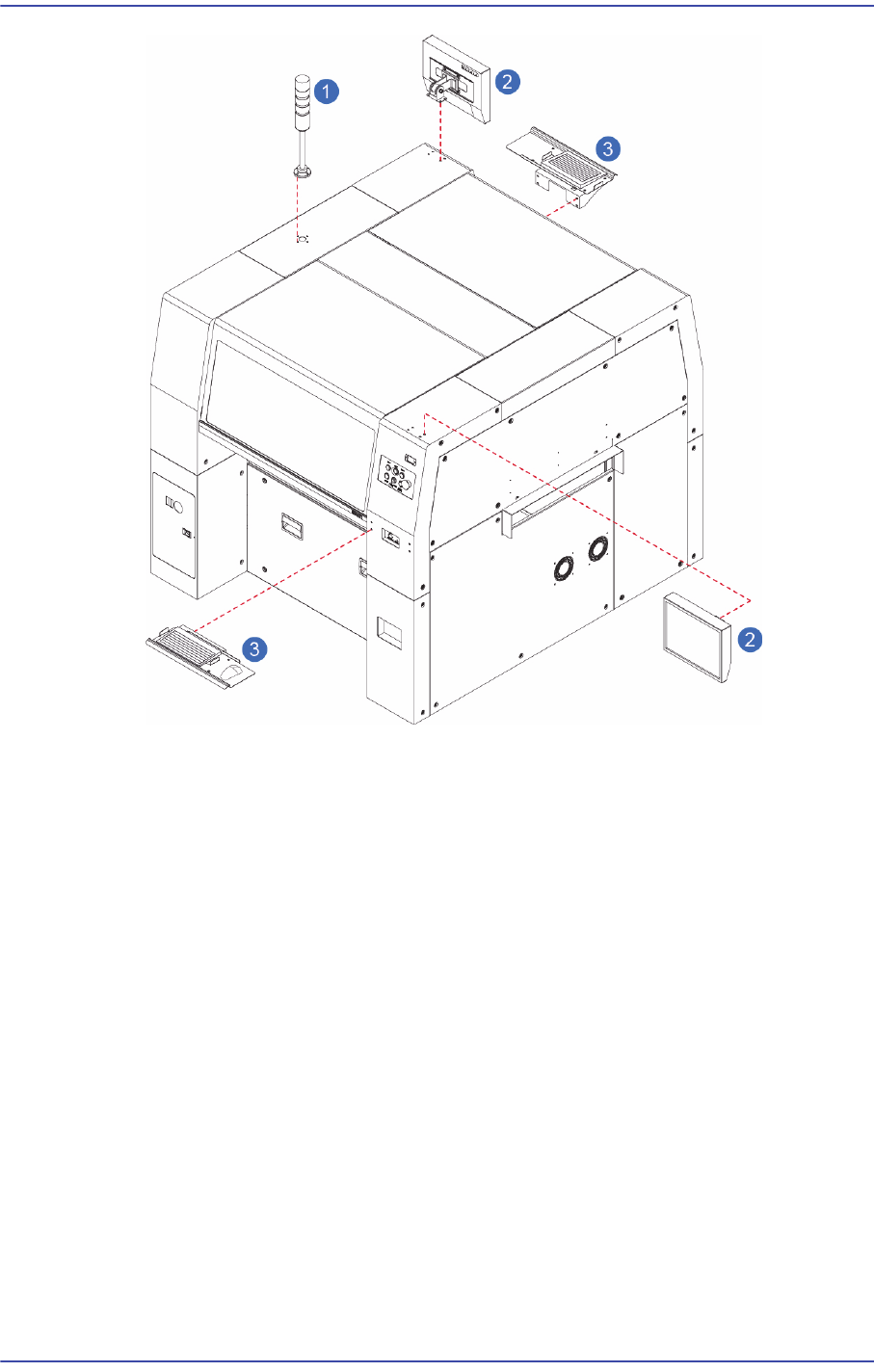 7-8 Samsung Componen t Placer SM471 Introduction 1: T ower lamp 2: 显示器 3: 键盘 及 鼠标垫板