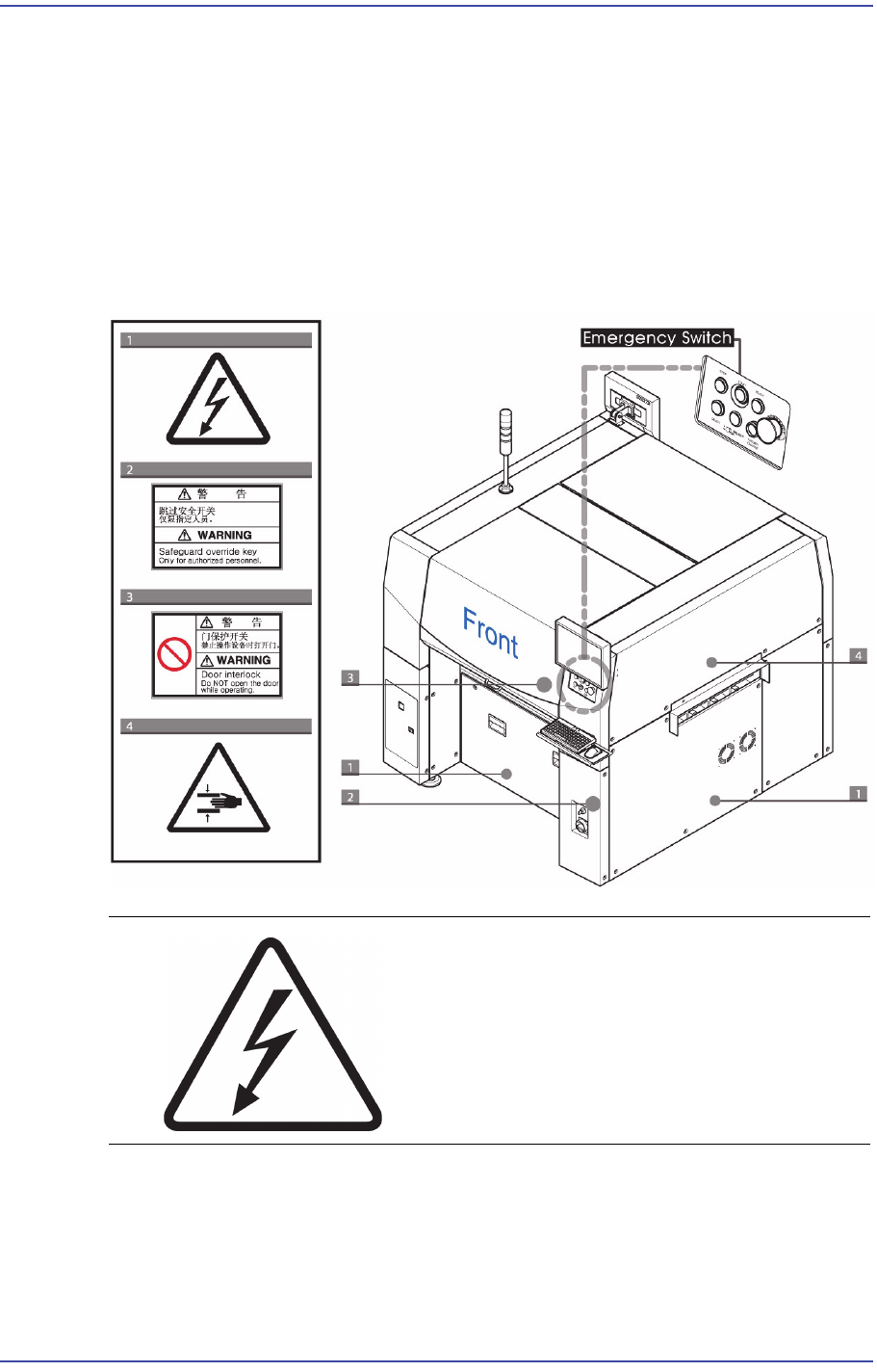 前言 iii 安全注意事項 (Safety Precaution) 以下各节的标签贴在指定的位置 上。 为了安全使用 设备请遵守各标签的指示事项。 标签脱落或损伤时请参考相应图 解在指定的位置上粘贴新标签。 有关标签订购或改 善及建议事项请咨询本公司的 CS 公司 (STS) 或 当地代理店。 设备前面 设备前面贴有以下标签 图 1.1 设备前面贴有以下标签 盖内侧及周围连接物部位存在高电 压要注意 电击危险。 在维护和修理设备操作…