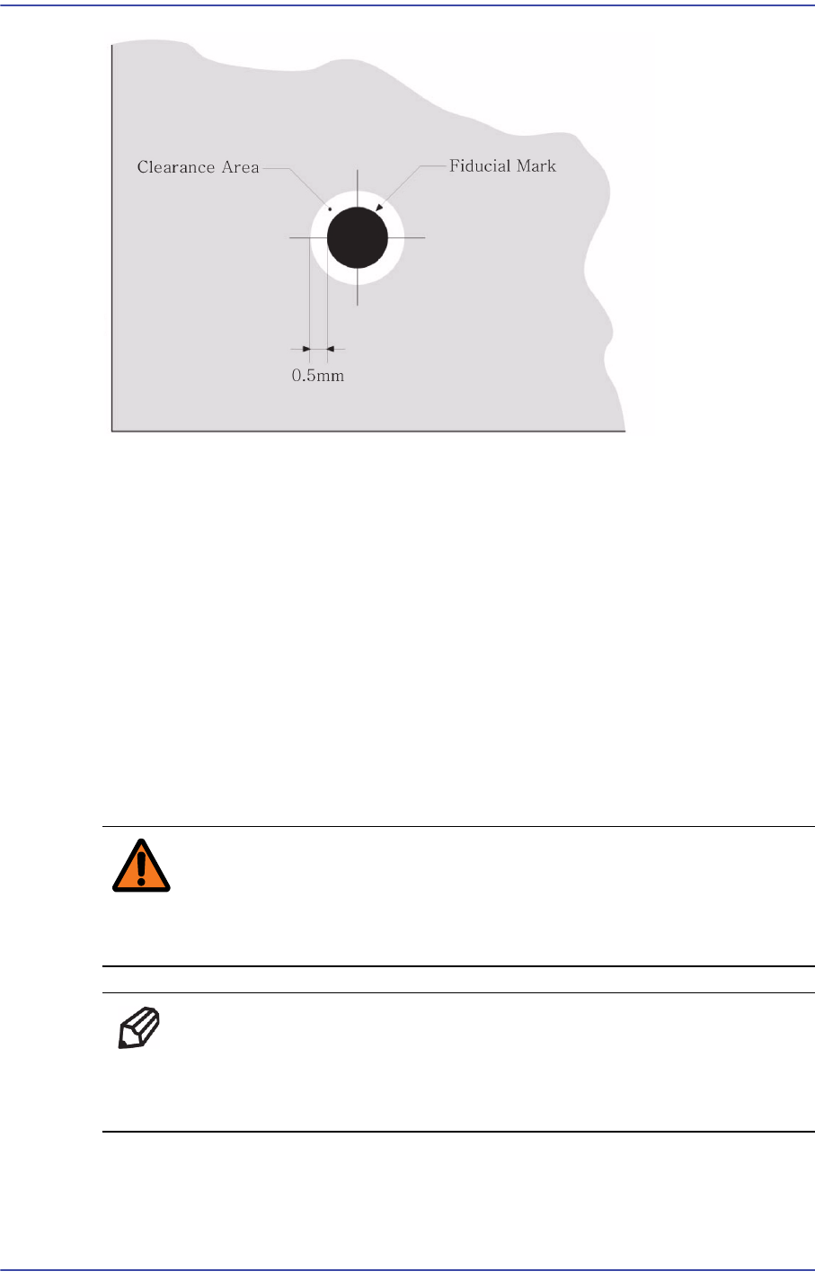 在基准点标记的周遍应有没有任何标记(焊盘, 焊锡, 记号)的四角形空隙区域。空隙