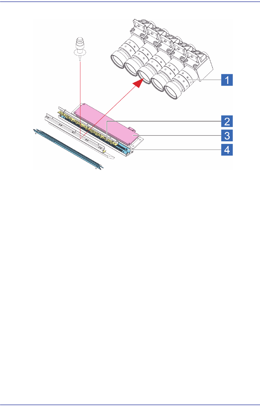 6-12 Samsung Componen t Placer SM471 Introduction 图 6.8 照明 1: Flyi ng_V ision 2: Coaxial 照明 3: Side 照明 4: Out er 照明 6.6.3.1. 侧面照明 侧面照明从部品的侧面去照射部品 。 此照明安装在沿 Z 轴 方 向动作的机构件上, 不 使用时停留在上方。 识别部品时跟着机构件移下来照 射部品。 识别 BGA 部品时, 用 在照…