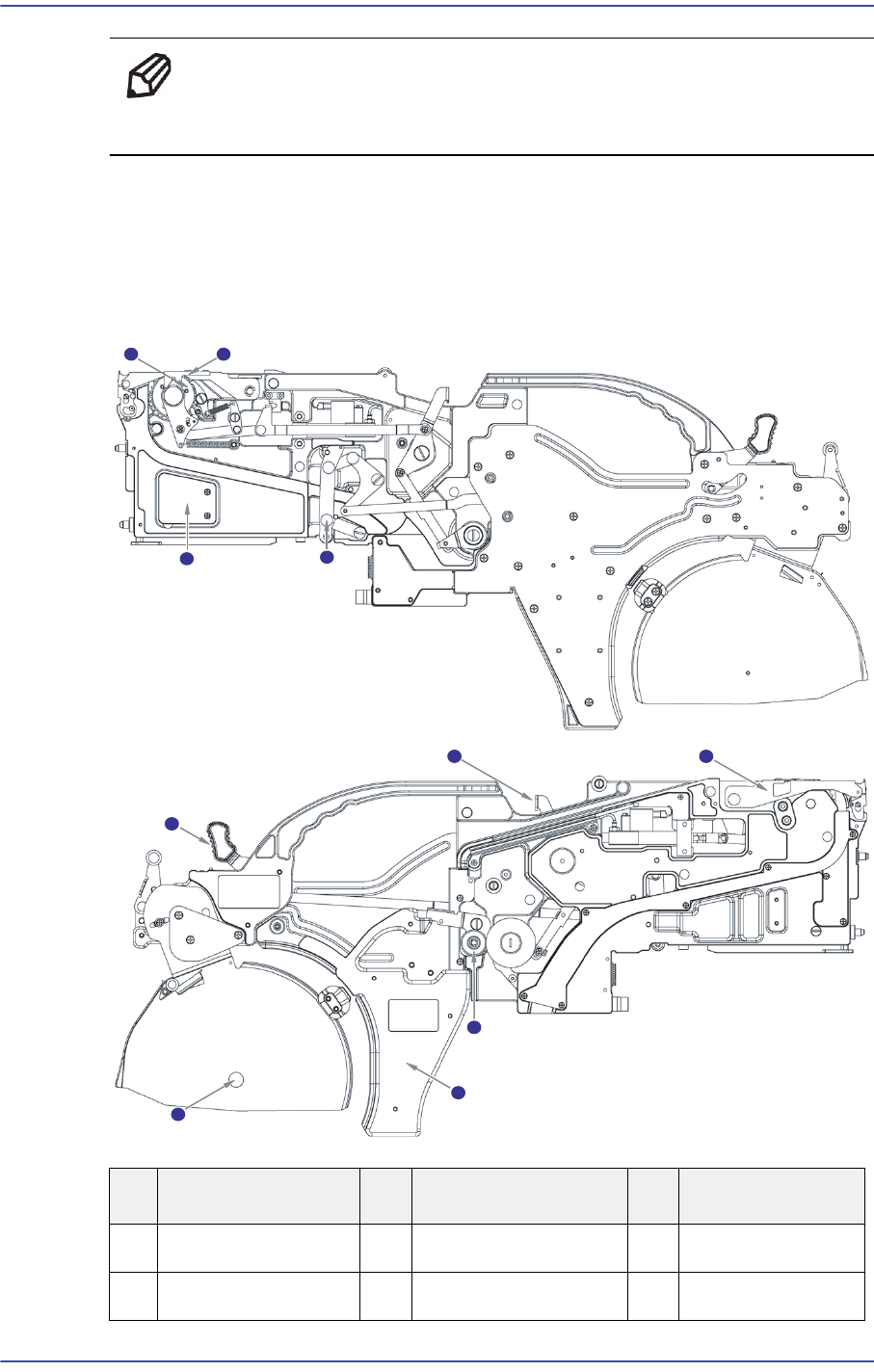 备 注 在前后面喂料器座的最外廓 (1, 60) 只能安装 8mm 带式喂料器