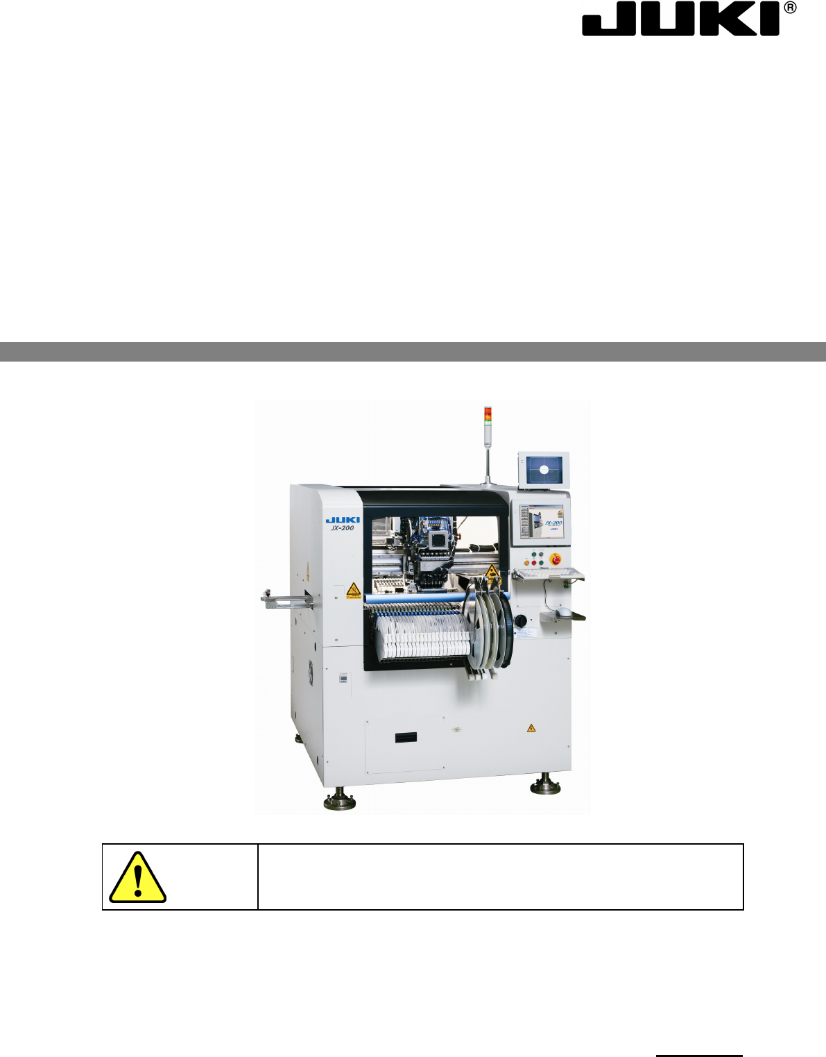 精巧 · 高速·高效能通用贴片机 JX-200 使用 说明书 感谢您购买本公司的产品。 注意 为了安全使用 JX - 200 ,请您在使用前务必详读本书,充分理 解本书的内容。 本书阅读后,将其保管在指定的场所 ,以备随时阅览。 40107677 Rev.0 2