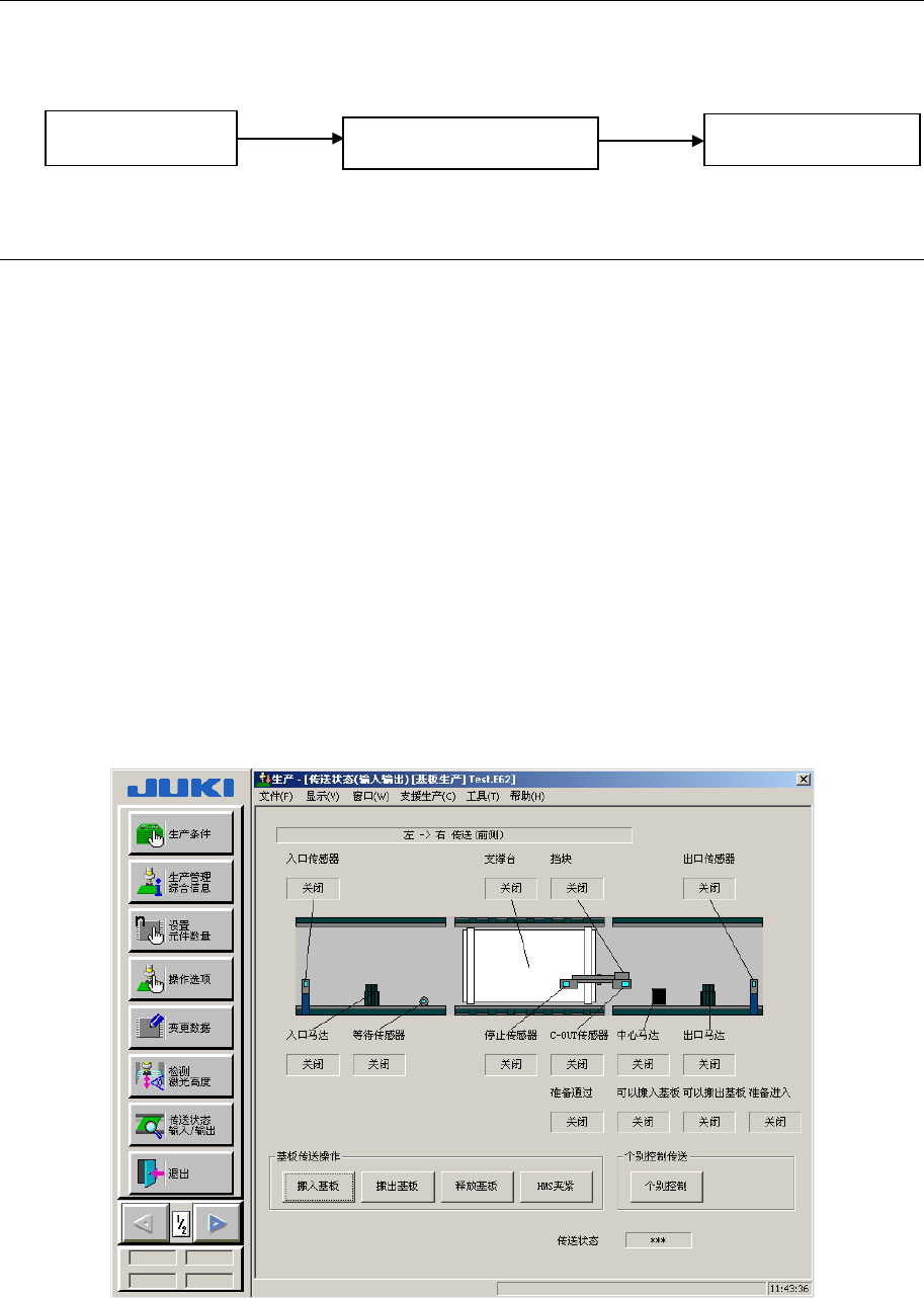 单击「确定」后,显示如下画面,基板抵达传感器上时,传送带即开始传动。