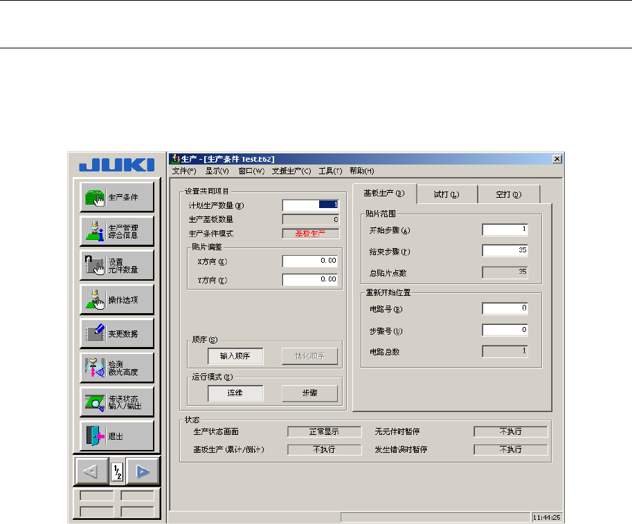 在主画面上选择“生产”/“基板生产”,或选择命令按钮的“生产(基板生产)”,则显示