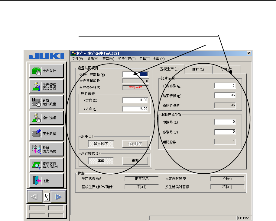根据“基板生产”、“试打”、“空打”各种生产模式,分别设定各自的生产条件。