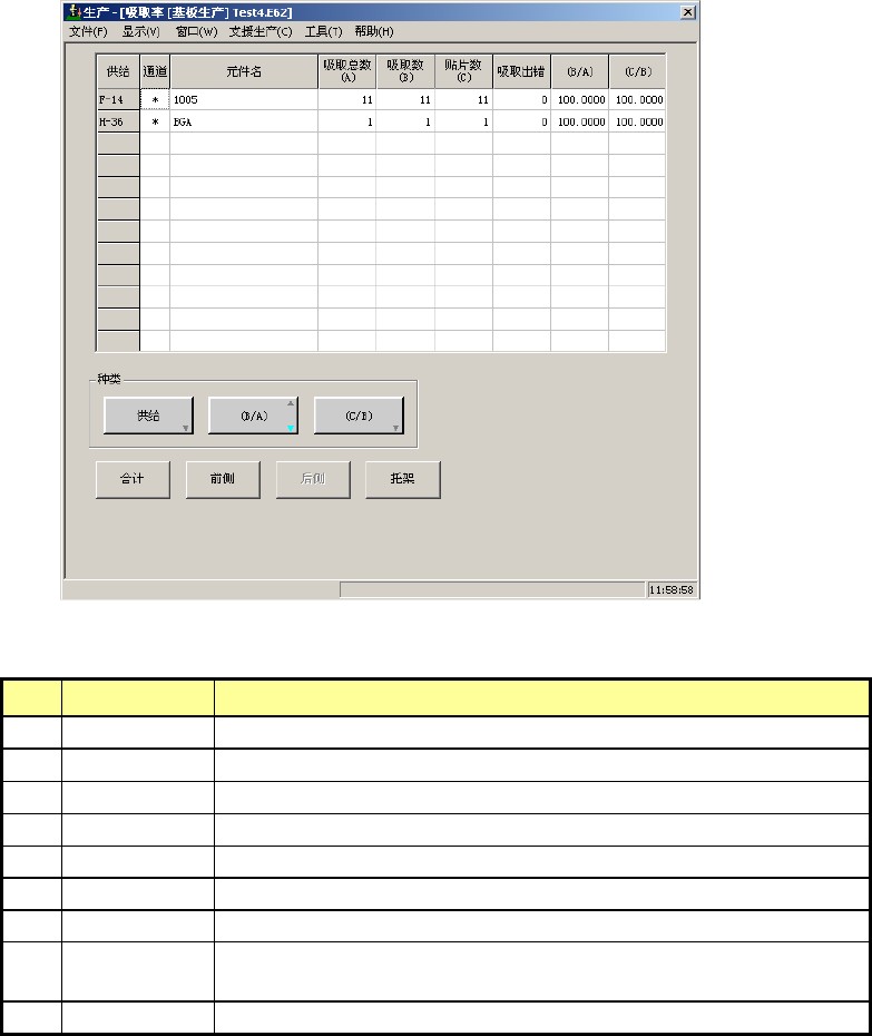 ② 总贴片率与总吸取率将在下一次生产时,以上一次的显示数据为基础累计计算。