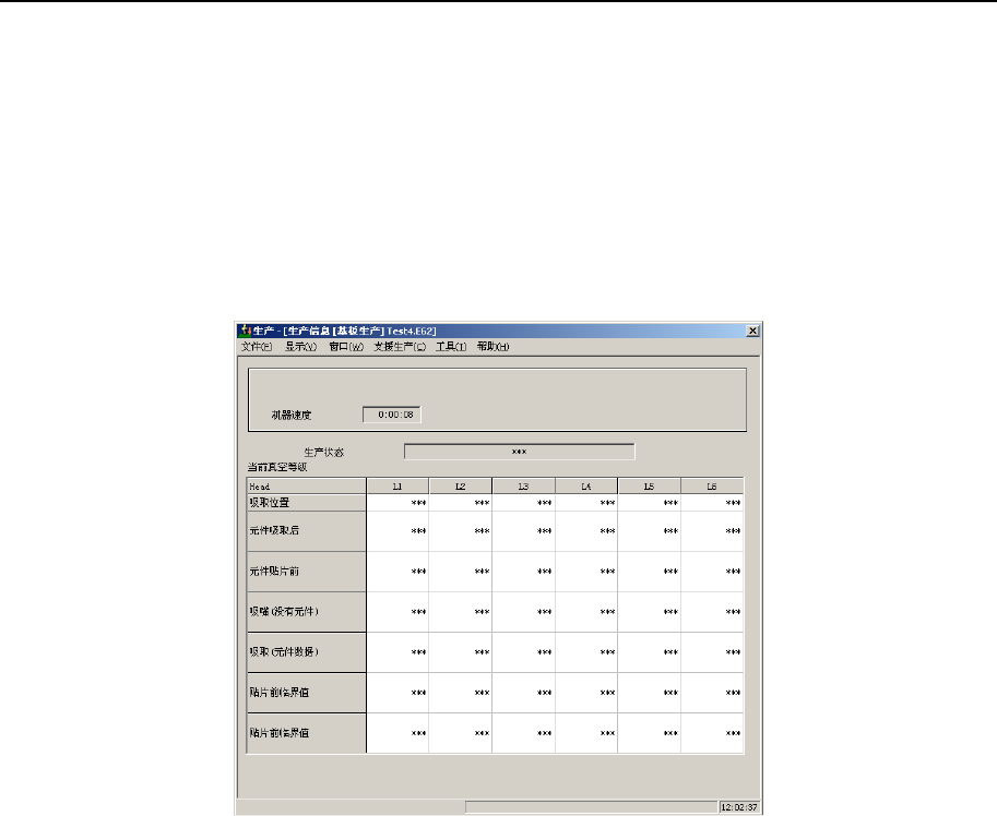 显示每1张基板的操作节拍、总贴片率、总吸取率、真空值的信息。