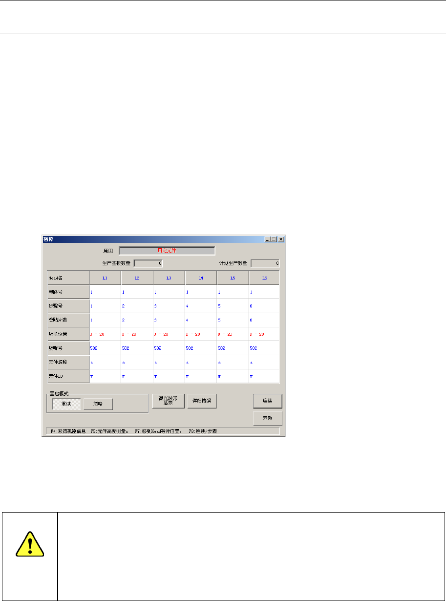 当从带状送料器、管状送料器吸取元件时,如果发生重试超次,或当元件剩余数量为0时,