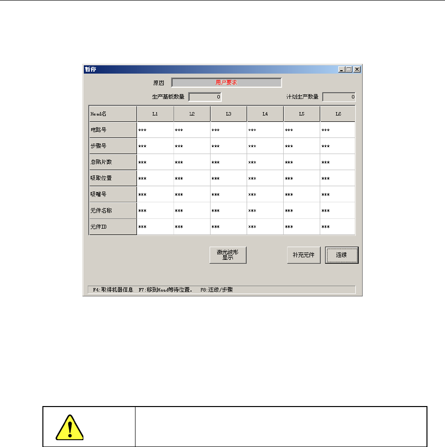 暂停的原因为激光脏污错误、芯片站立错误、激光识别错误、异类元件错误时,会显示