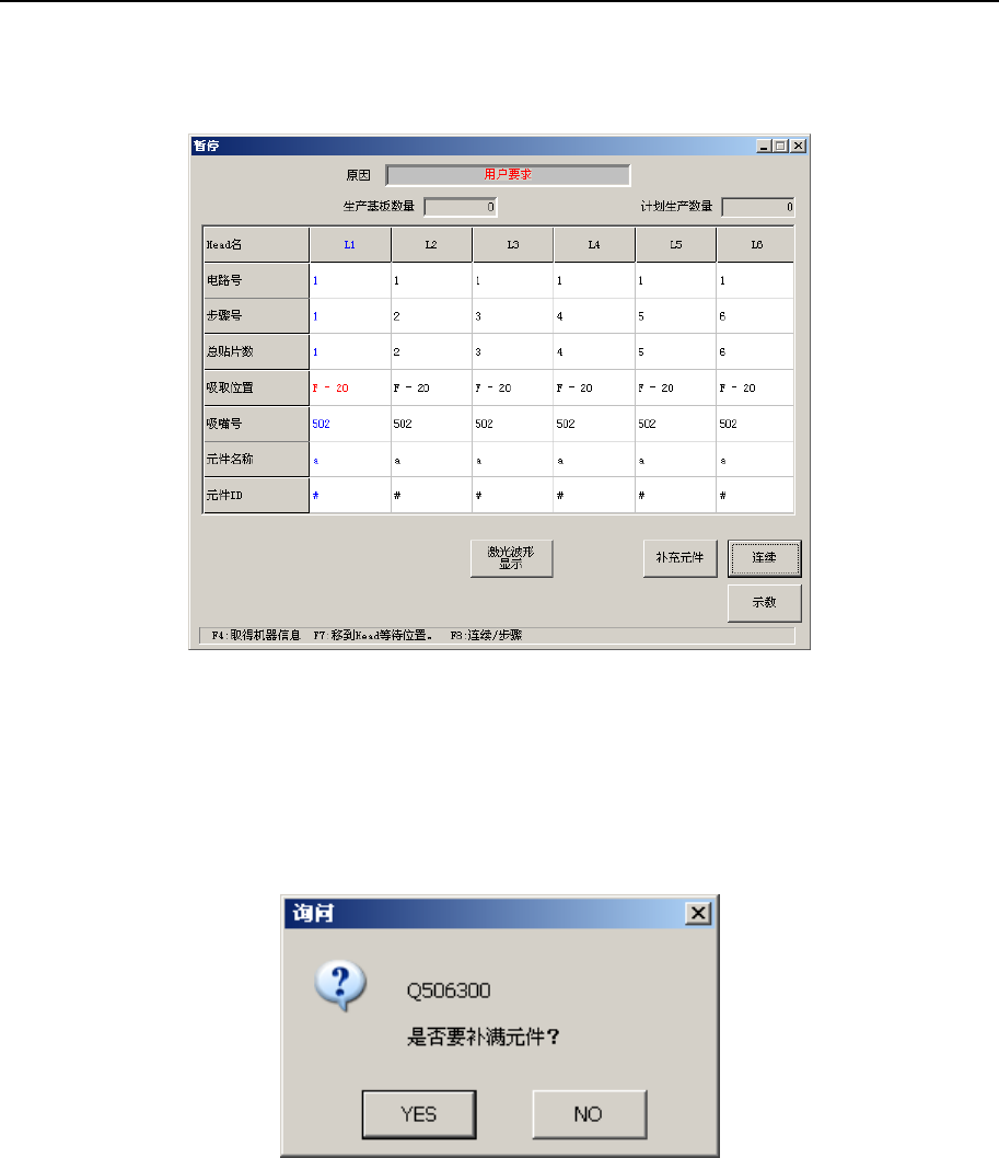 如果在操作选项“生产(暂停)”标签中选中“给暂停对话框增添‘补充元件’按钮”,则