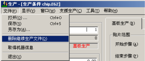 继续生产数据存在时,菜单栏中的“文件”/“删除继续生产文件”与工具栏的按钮显示
