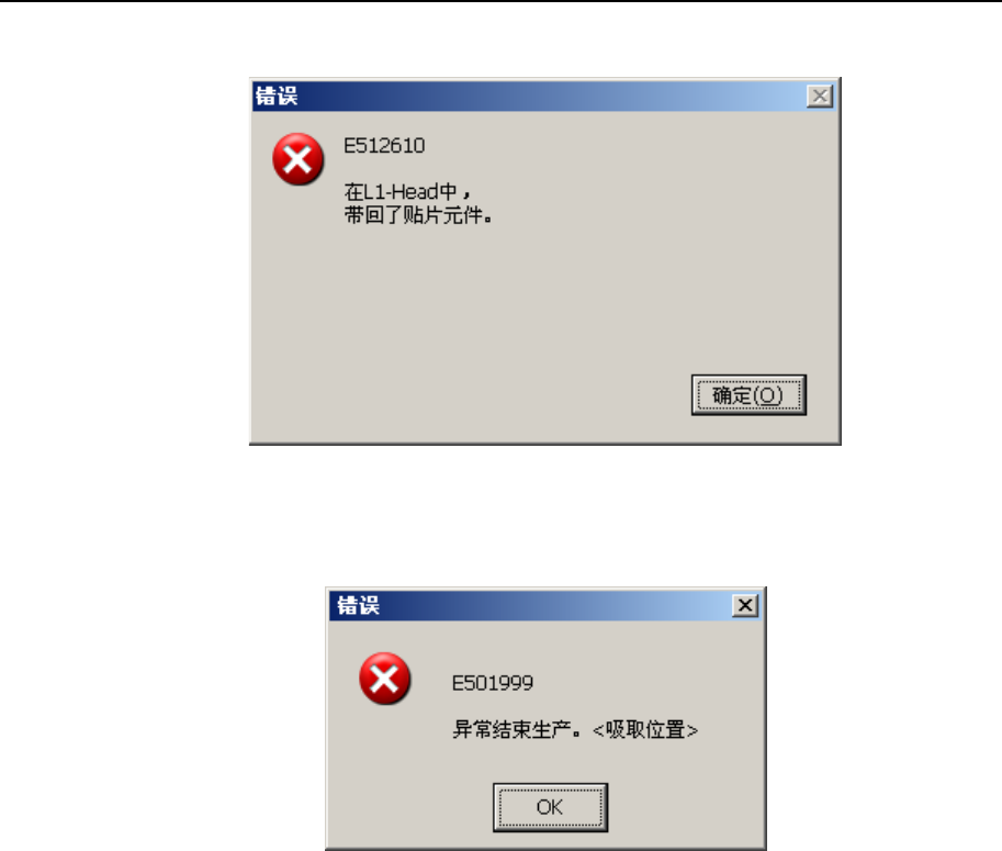 选择“OK”后结束生产。错误发生后,请检查吸嘴尖端是否附着元件。并检查所使用的吸